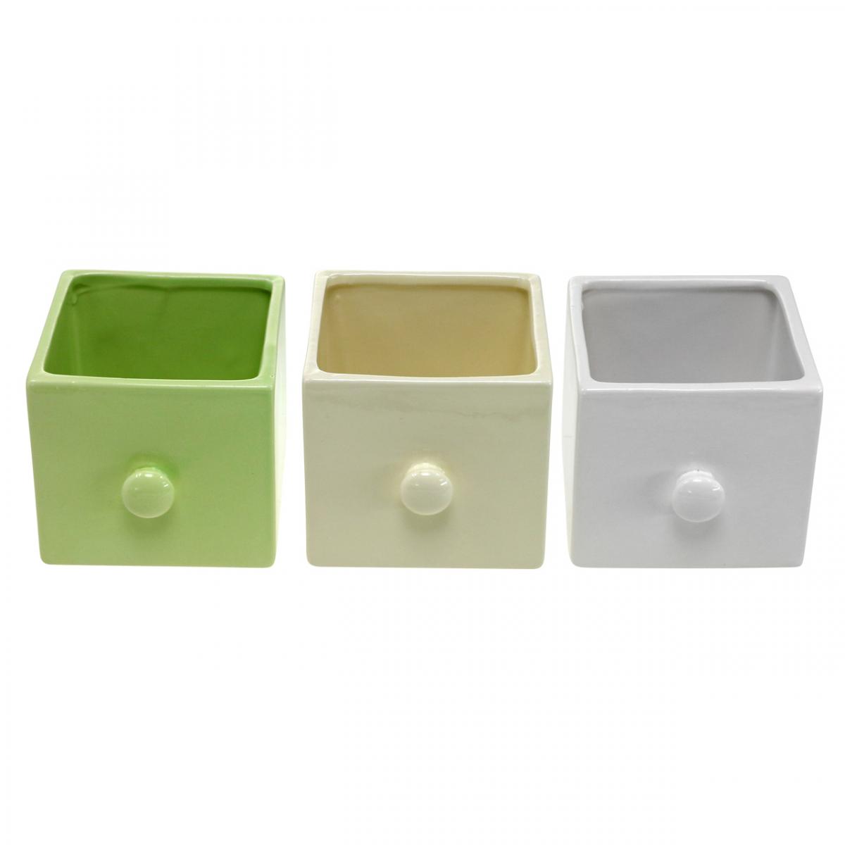 Produktnavn: Keramisk plantekasse, skuff for planting, firkantet, 12×10,5×9,5cm 3 stk.
