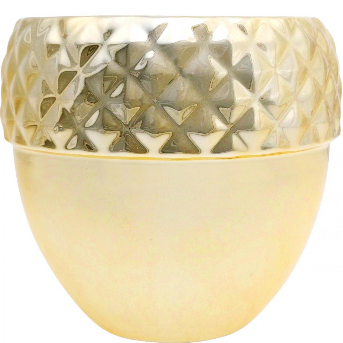 Produktnavn: Keramisk planter eikenøtt gyllen julepynt Ø18cm H16,5cm