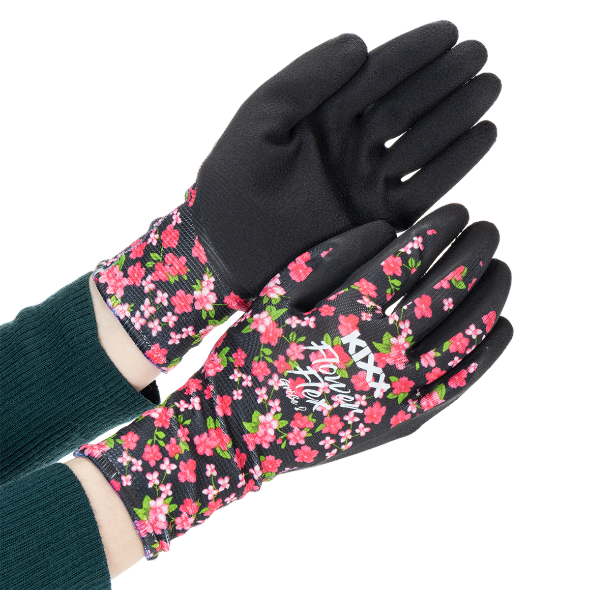 Disse Kixx® hagehanskene er trykt med et livlig blomstermønster. Dette gjør hagearbeid ikke bare mye morsommere, men lar deg også kombinere praktisk bruk med et moteriktig utseende.