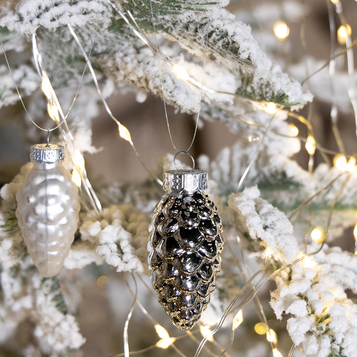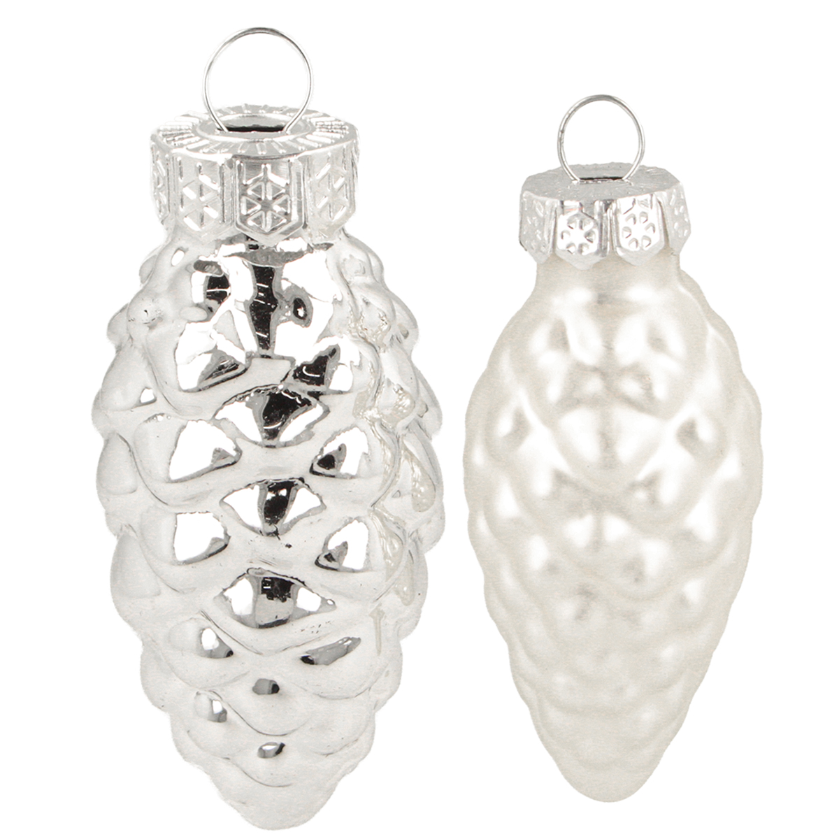 Kjegler i glass, sølv, 5 cm, 14 stk.
