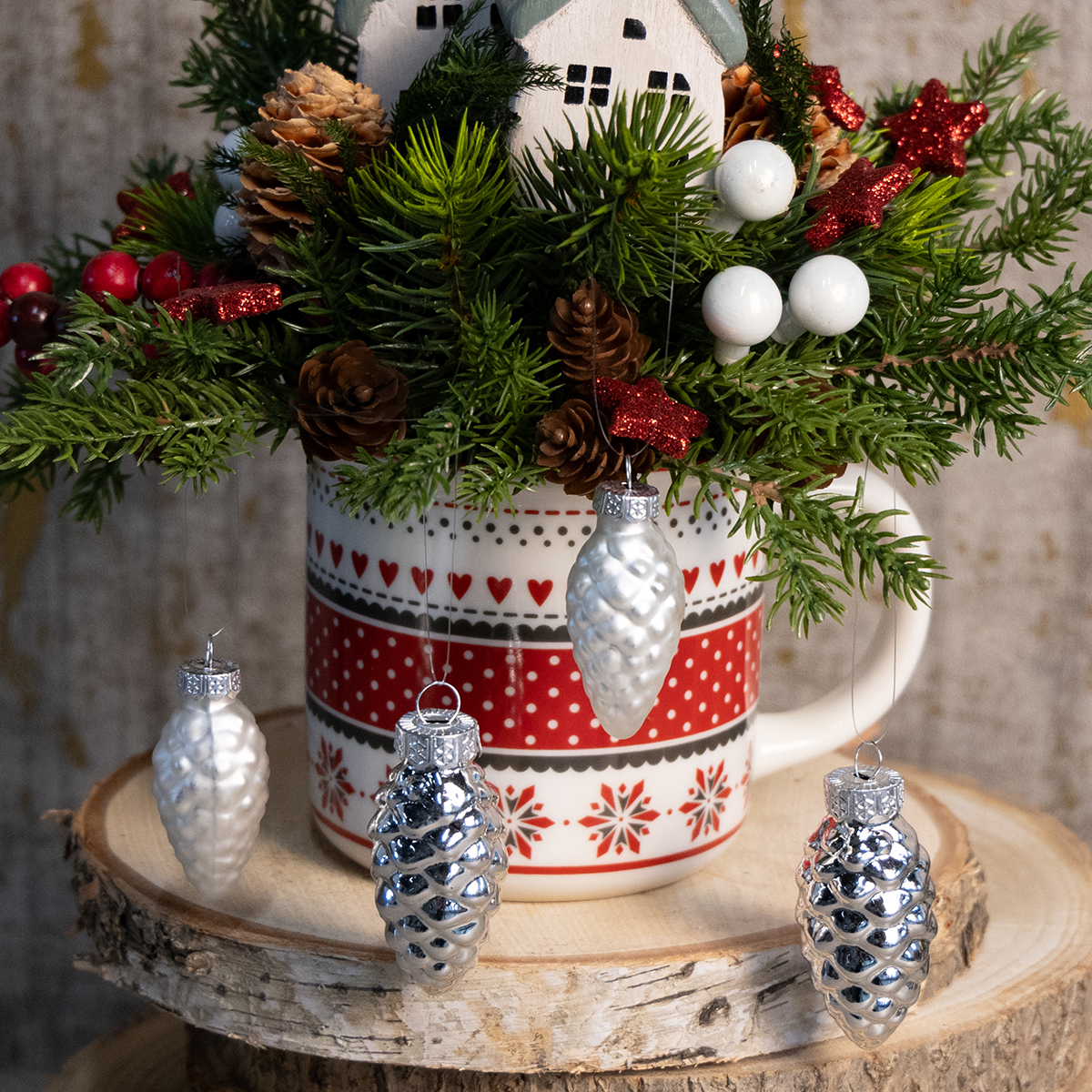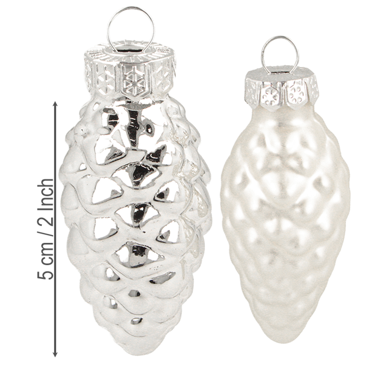 Produktnavn: Kjegler i glass, sølv, 5 cm, 14 stk.