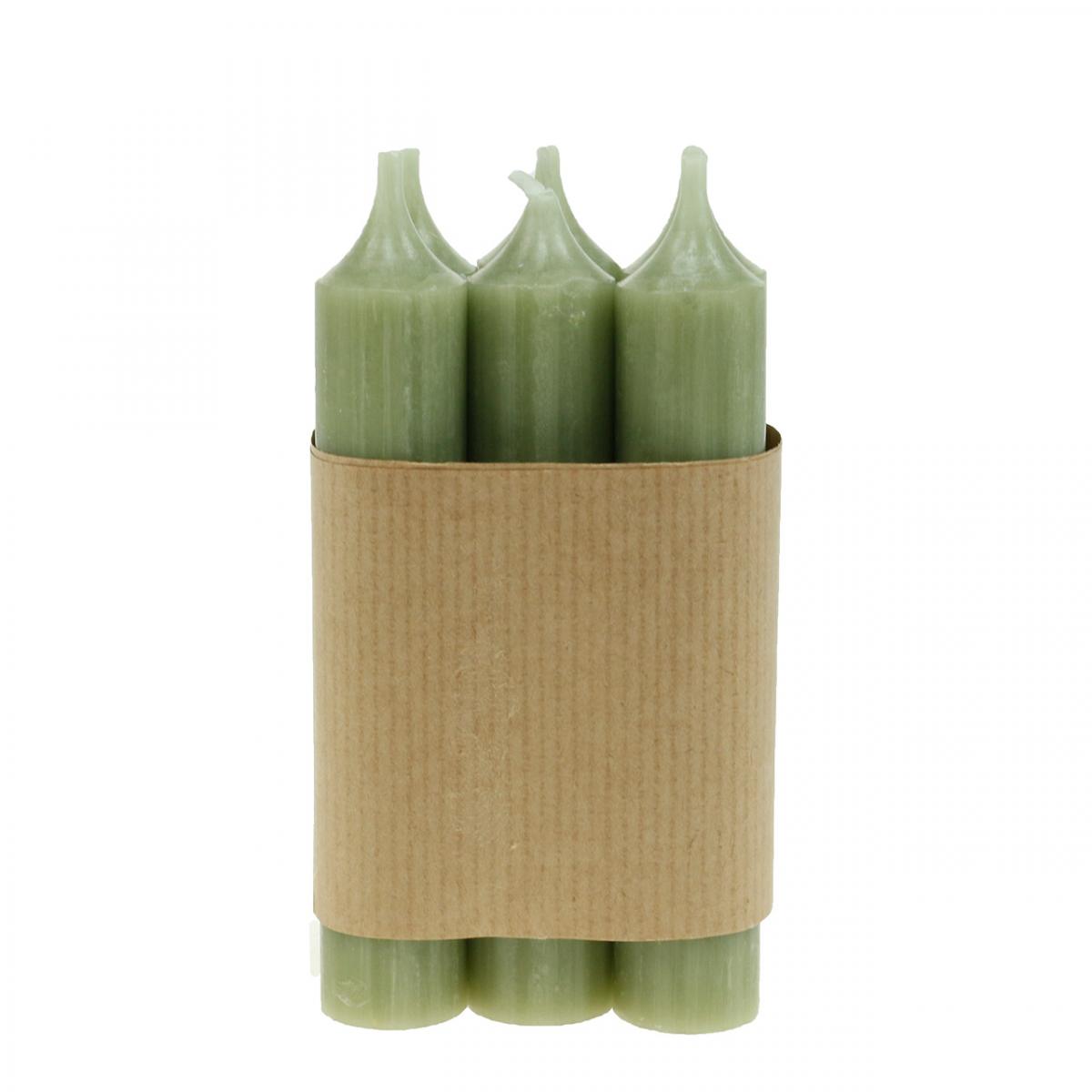 Konisk lys grønt ensfarget premium lys 120mm/Ø21mm 6stk