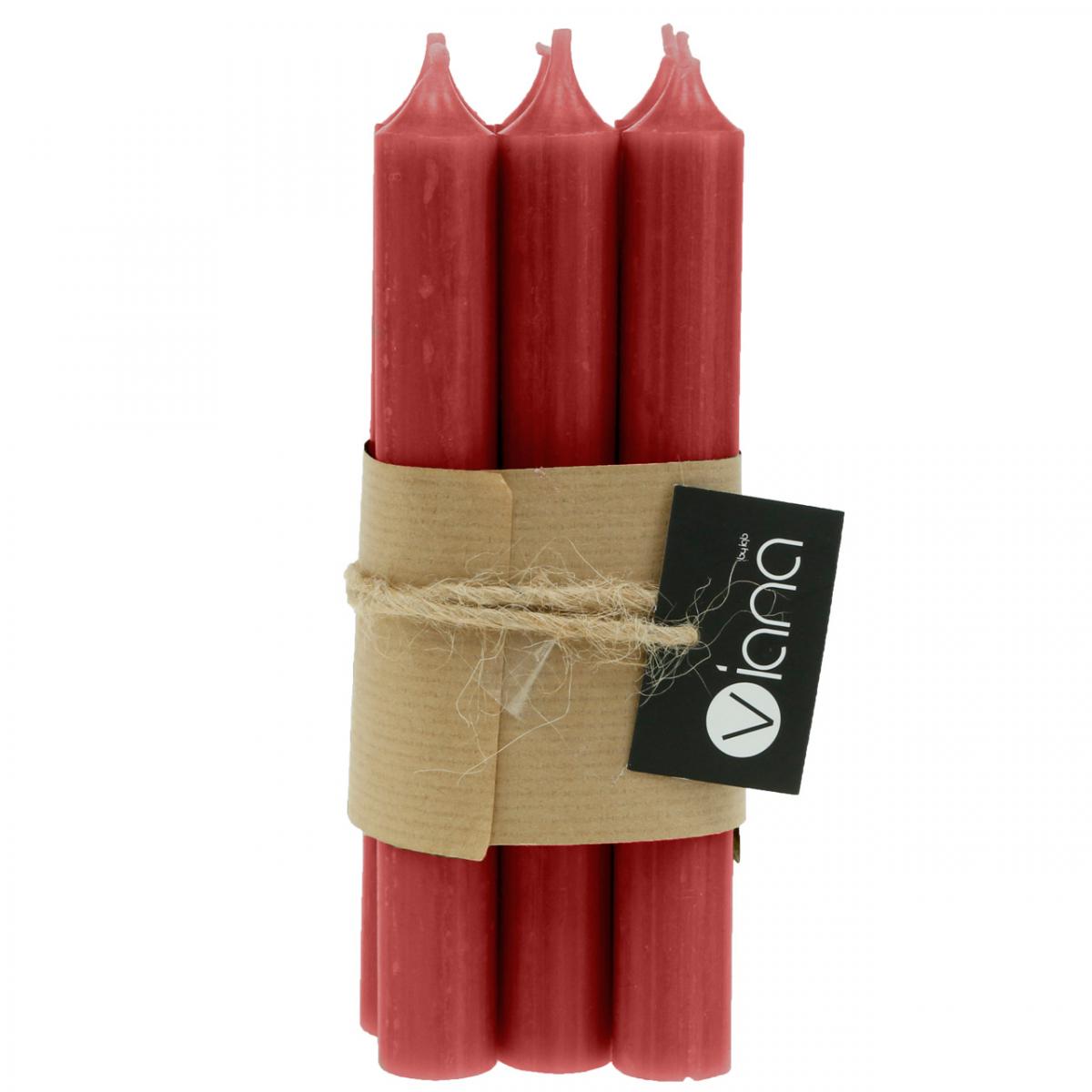 Konisk lys rødt ensfarget lys rubinrødt 180mm/Ø21mm 6stk