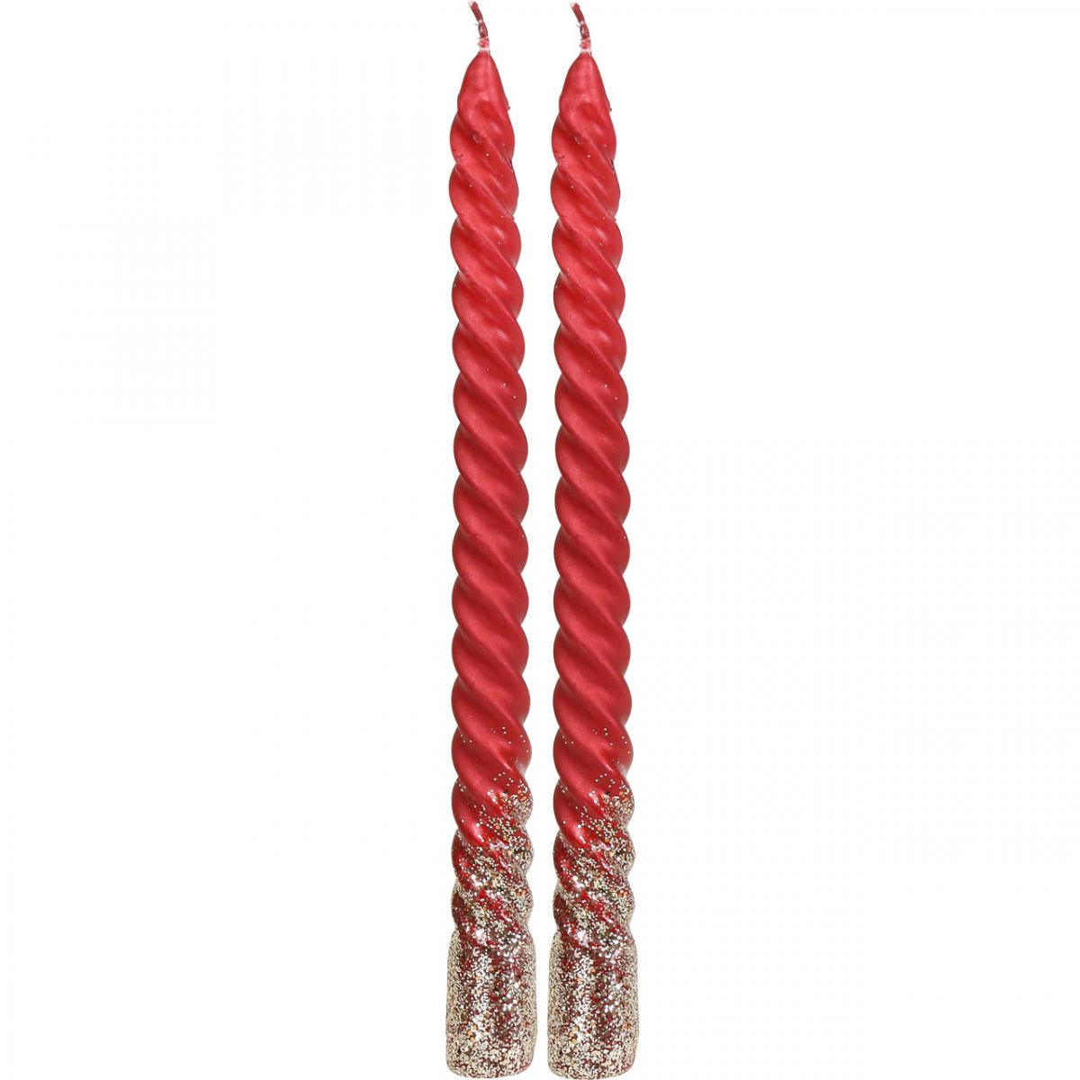 Koniske lys vridd lys spirallys rød 24cm 2stk