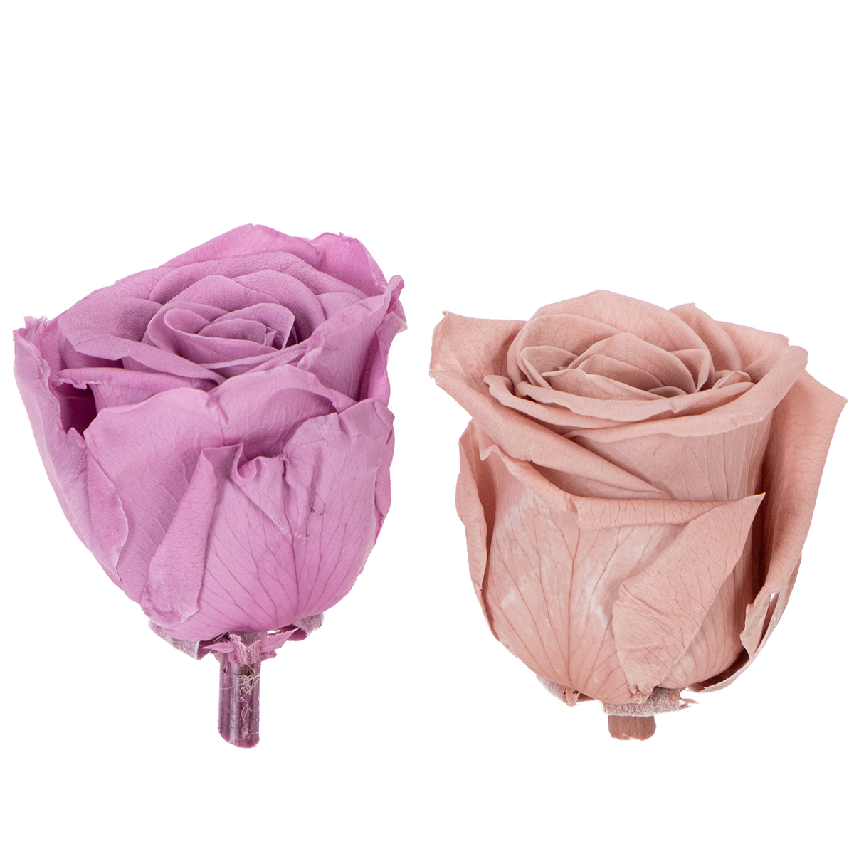 Våre konserverte roser i elegant syrin er ekte allroundere og den perfekte følgesvenn for spesielle øyeblikk. Du vil motta seks vakre rosehoder, hver 4 cm i diameter og 5 cm høye. Den spesielle konserveringsprosessen sikrer at rosene beholder sin naturlige form, farge og skjønnhet uten vedlikehold. Ingen vanning, ingen visnen – disse rosene er laget for å vare evig. Plasser dem som et elegant midtpunkt på bryllupsbordet, bruk dem til kreative håndverksprosjekter, eller gi dem som en romantisk jubileumsgave. Den varme syrinfargen utstråler en magisk ro og komplementerer moderne dekorasjoner eller vintage-stildetaljer vakkert.