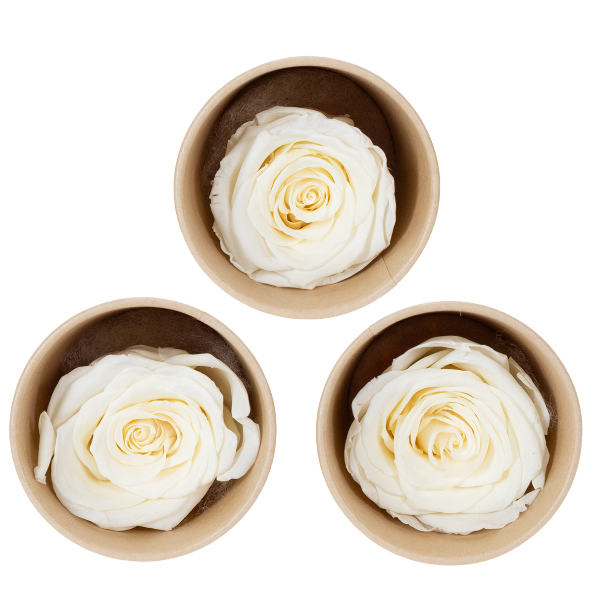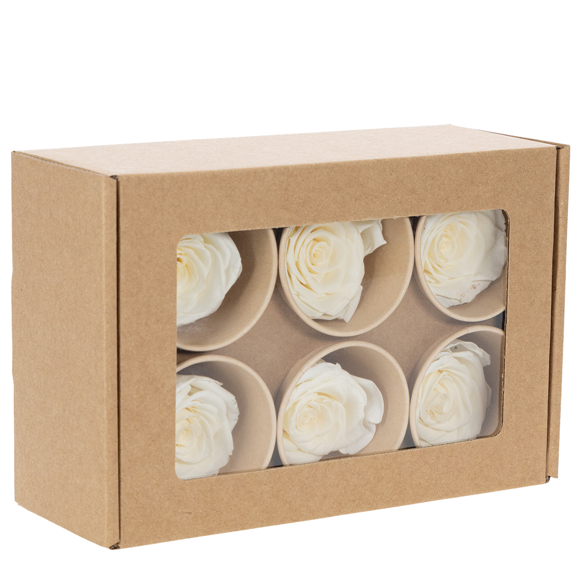 Disse hvitkonserverte rosehodene kombinerer estetikk og lang levetid på en harmonisk måte. Med en diameter på omtrent 4 centimeter og en høyde på 5 centimeter passer de vakkert inn i en rekke dekorative stiler. Den elegante hvite fargen passer sømløst inn i romantiske omgivelser, enten det er vintage, landlig eller moderne minimalistisk. Rosehodene har blitt nøye konservert for å bevare form, farge og tekstur i årene som kommer.