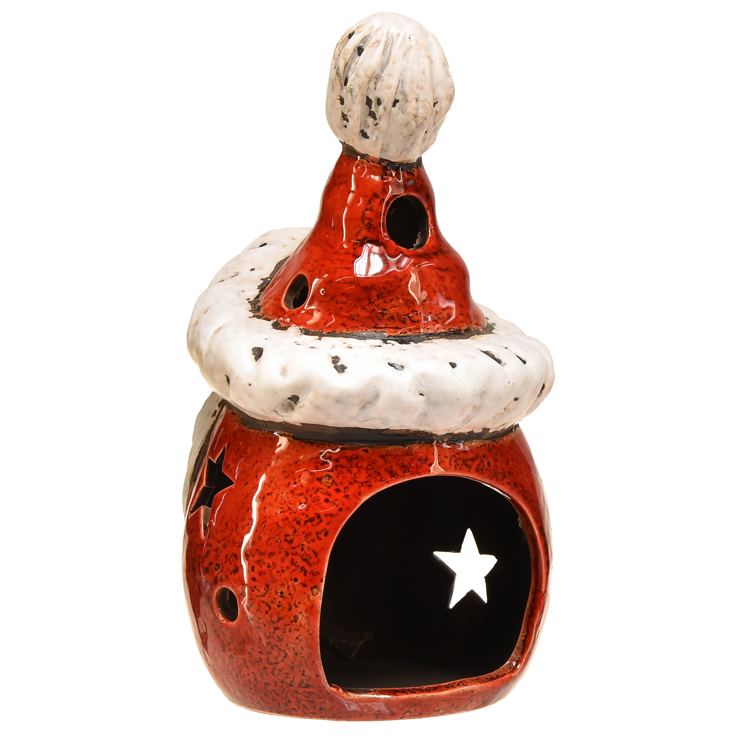 Vår julenisselykt i rødt er det ideelle valget for å spre julesjarm og trylle frem koselig lys. Den håndlagde juledekorasjonen i form av en dekorativ figur av julenissen, som tilsynelatende fungerer som en lykt, oppfyller ikke bare funksjonelle, men også estetiske behov. Med en størrelse på 18 cm passer denne lysestaken perfekt på enhver vinduskarm, bord og stue. Den røde fargen og det vennlige ansiktsuttrykket skaper en varm og innbydende atmosfære, mens levende lys som danser gjennom stjerneutskjæringene fremkaller fascinerende lysspill på veggen.
