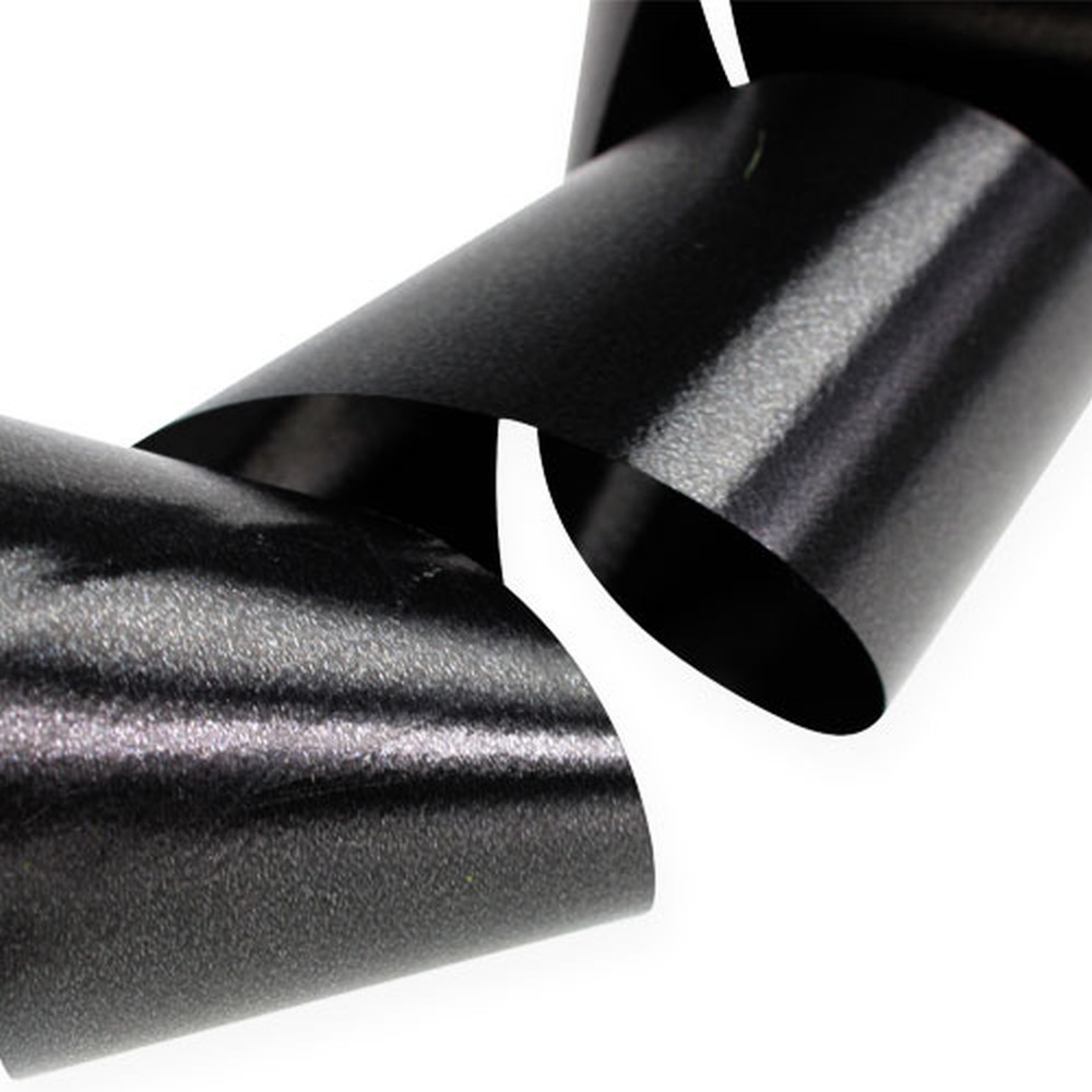 Det svarte krøllbåndet er omtrent 50 millimeter bredt og omtrent 100 meter langt. Den er laget av 100% polypropylen og er viklet på en liten papprulle.