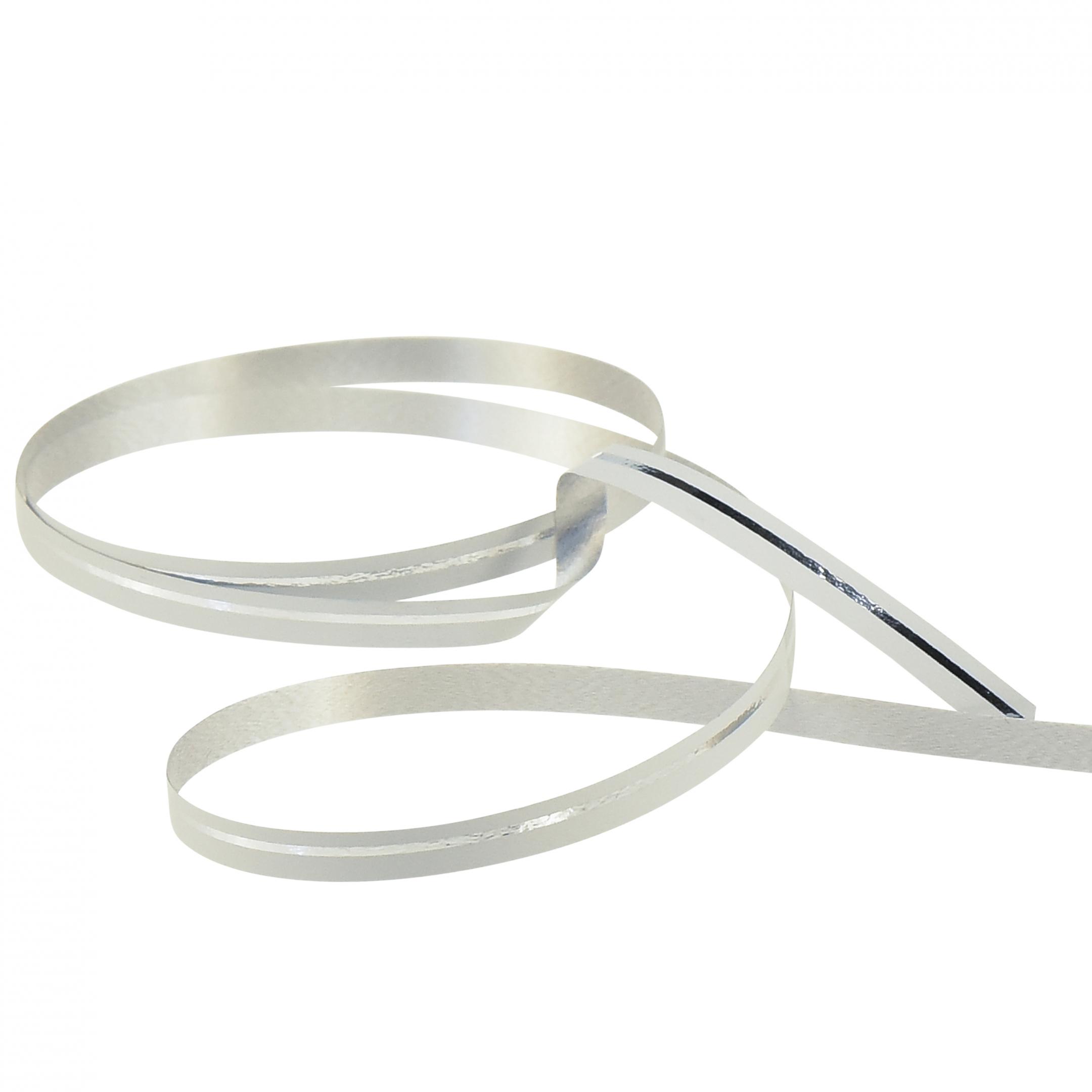 Krøllebånd gavebånd hvit med sølvstriper 5mm 250m