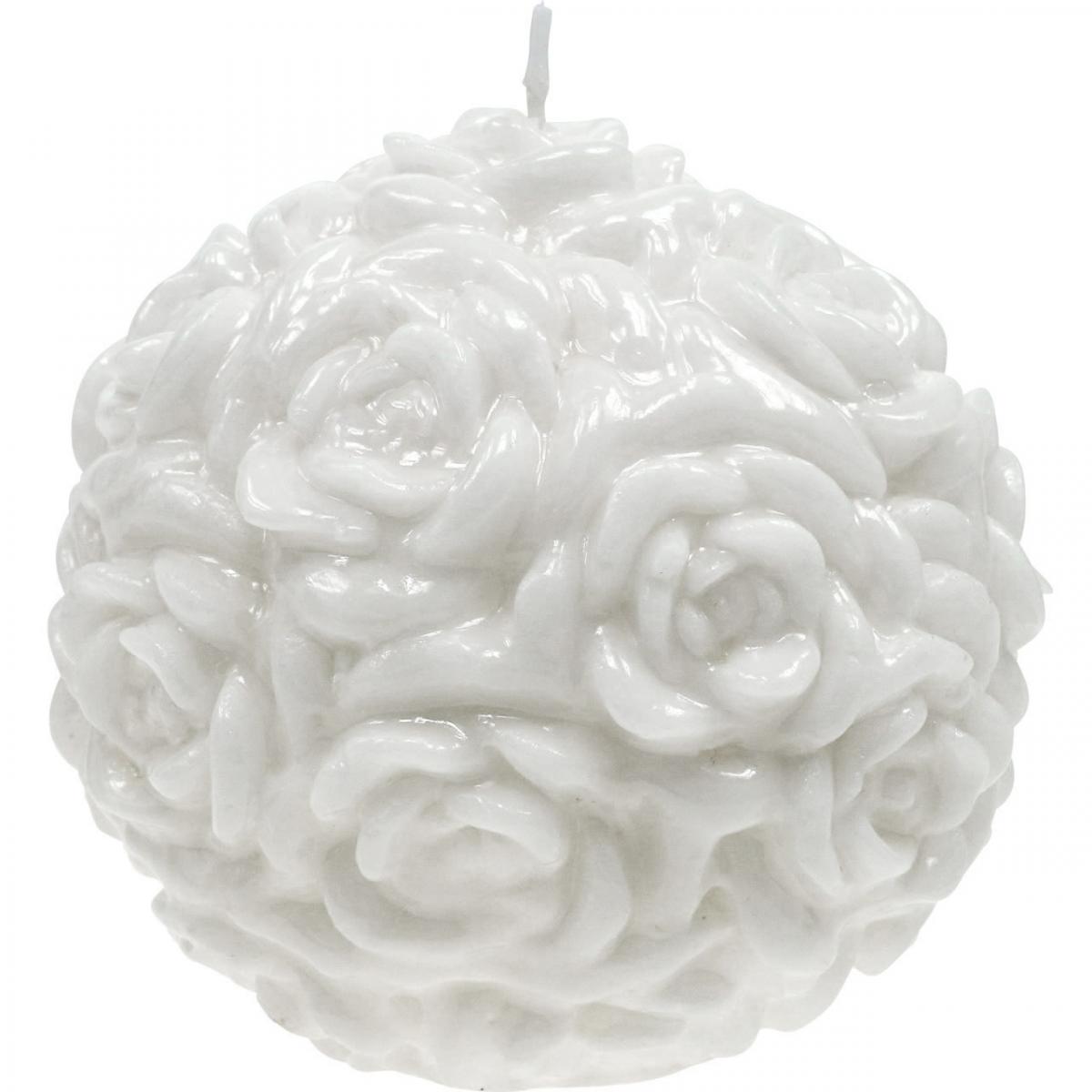 Kulelys med rosemotiv, borddekorasjon til bryllup og bursdager, 10,5 cm, hvit