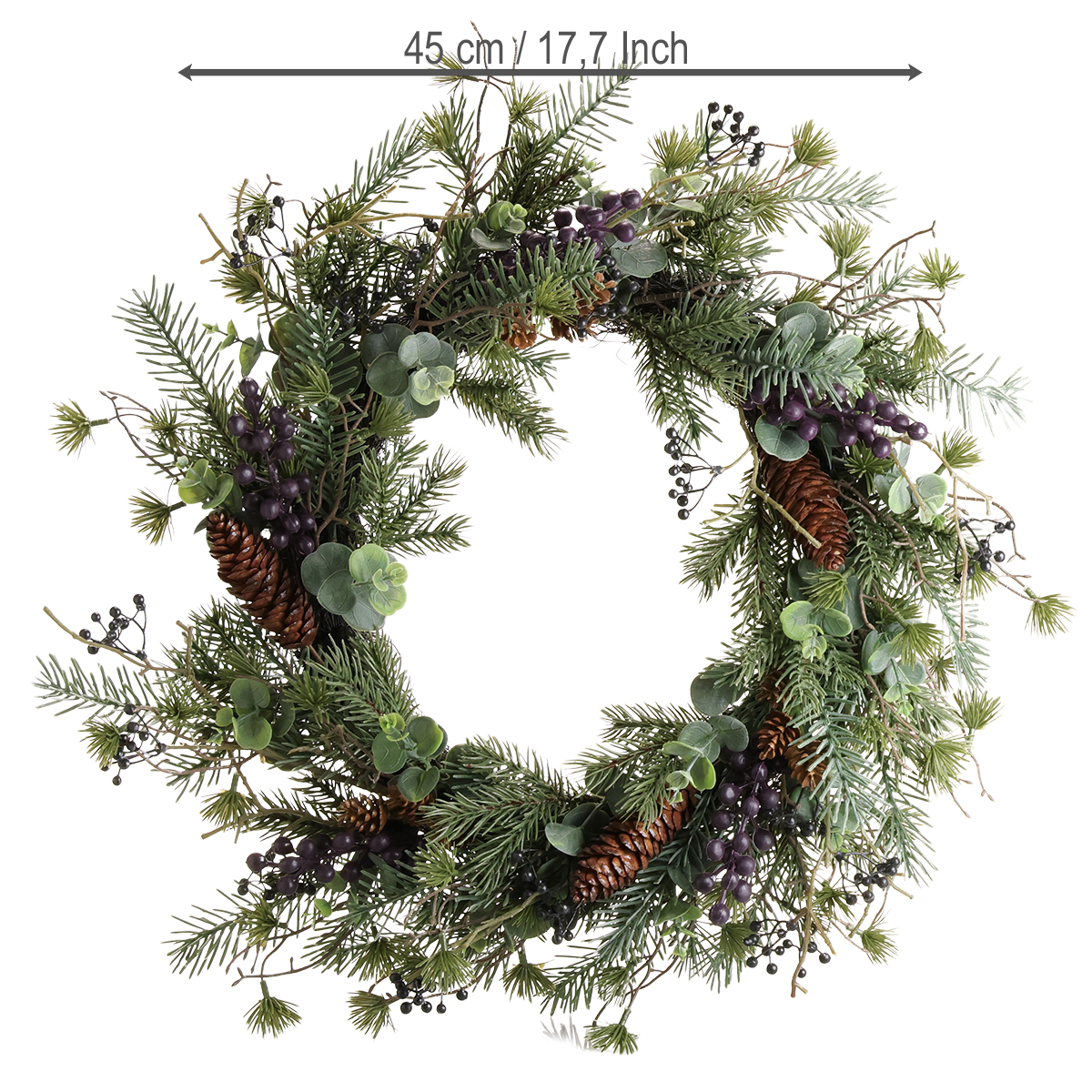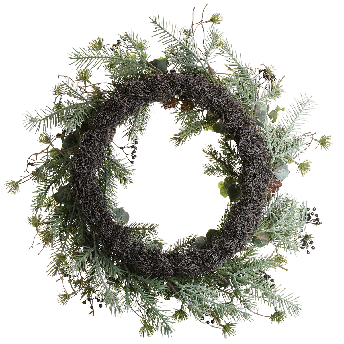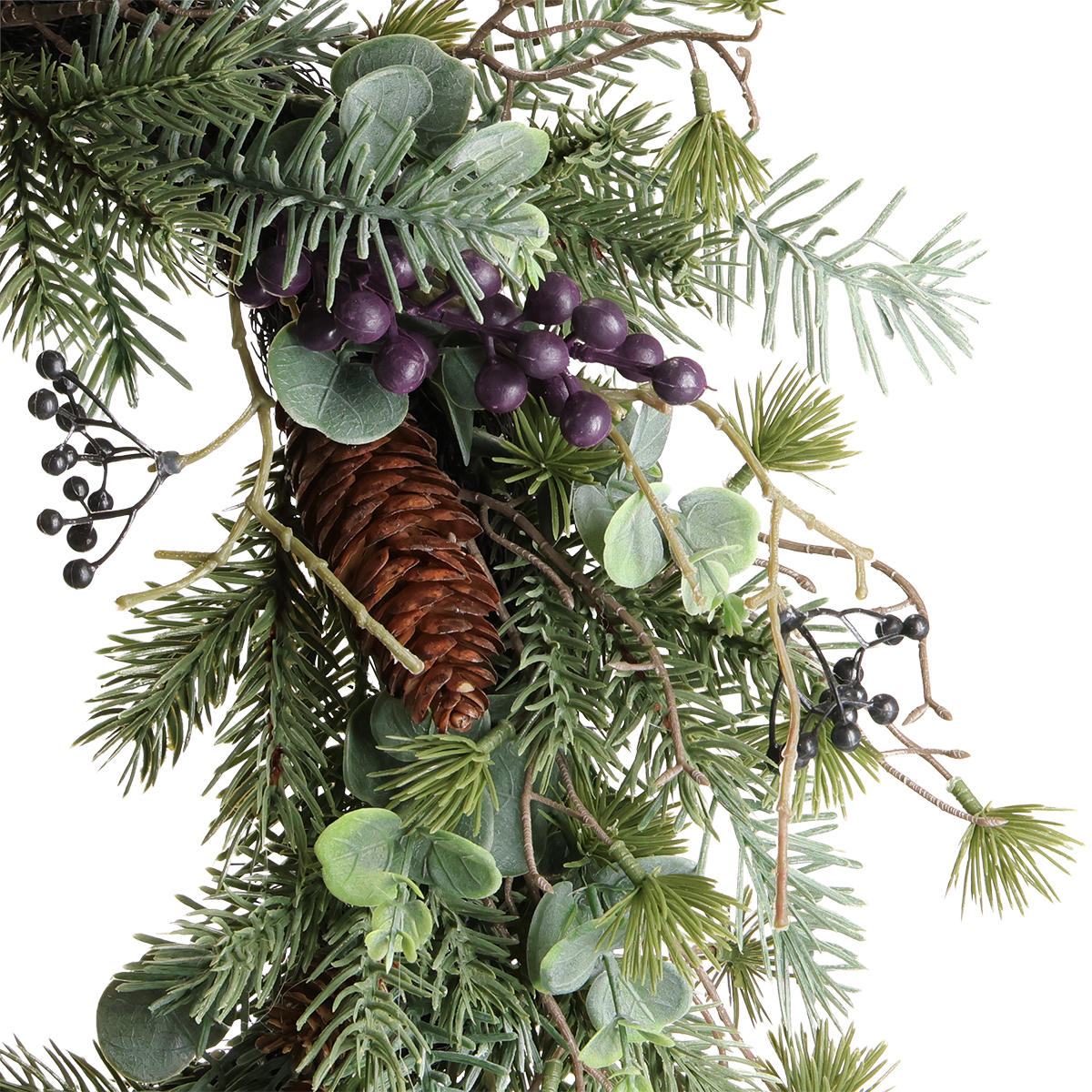 - Materiale: Kunstig vinranke med eukalyptus, kongler og diverse nåleplanter