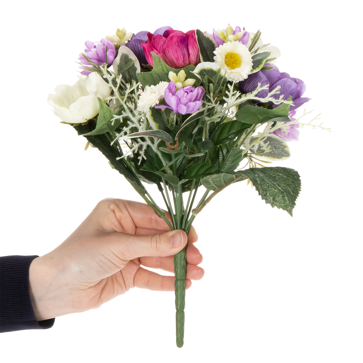 Kunstig blomsterbukett med anemoner, vårdekorasjon, allsidig i et moderne design, 26 cm
