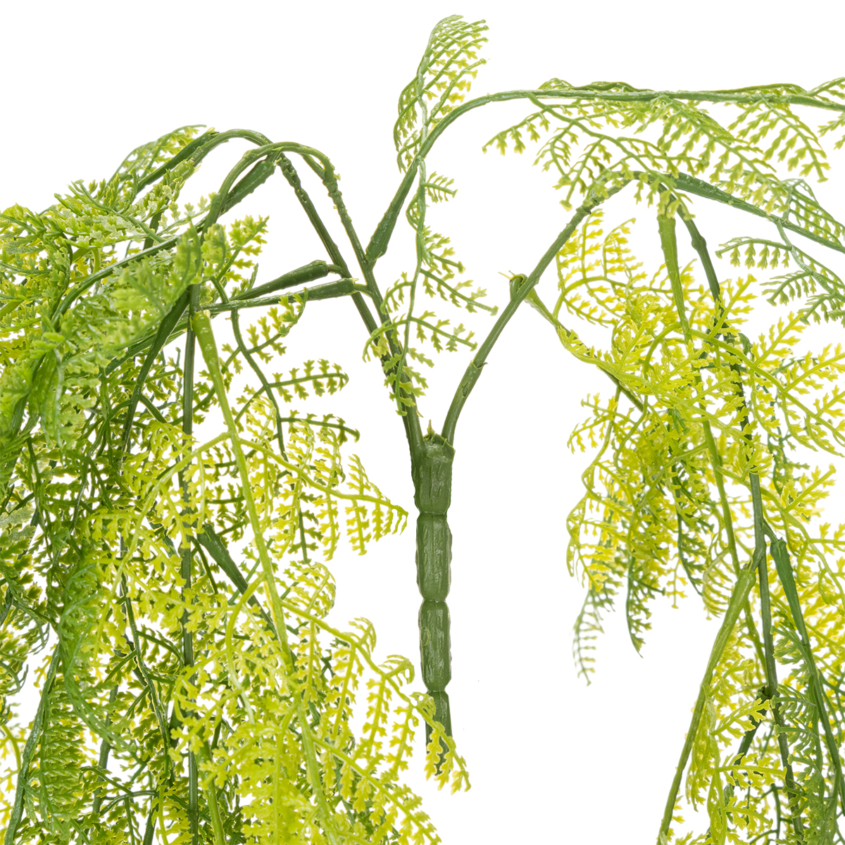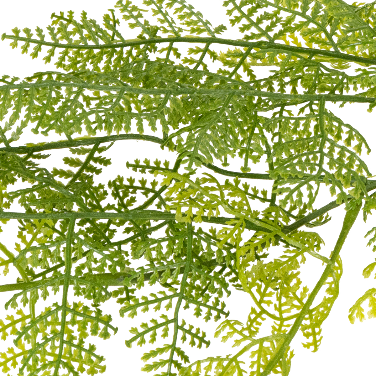 Denne kunstige bregnen er laget av høykvalitets, UV-bestandig og slitesterk plast, og beholder sin livlige grønne farge selv under varierende lysforhold og temperaturer. Med sine overlappende blader komplementerer planten moderne, skandinaviske eller naturlige interiørstiler perfekt. Kombiner den med stilige vaser eller andre kunstige planter for å personliggjøre rommene dine.