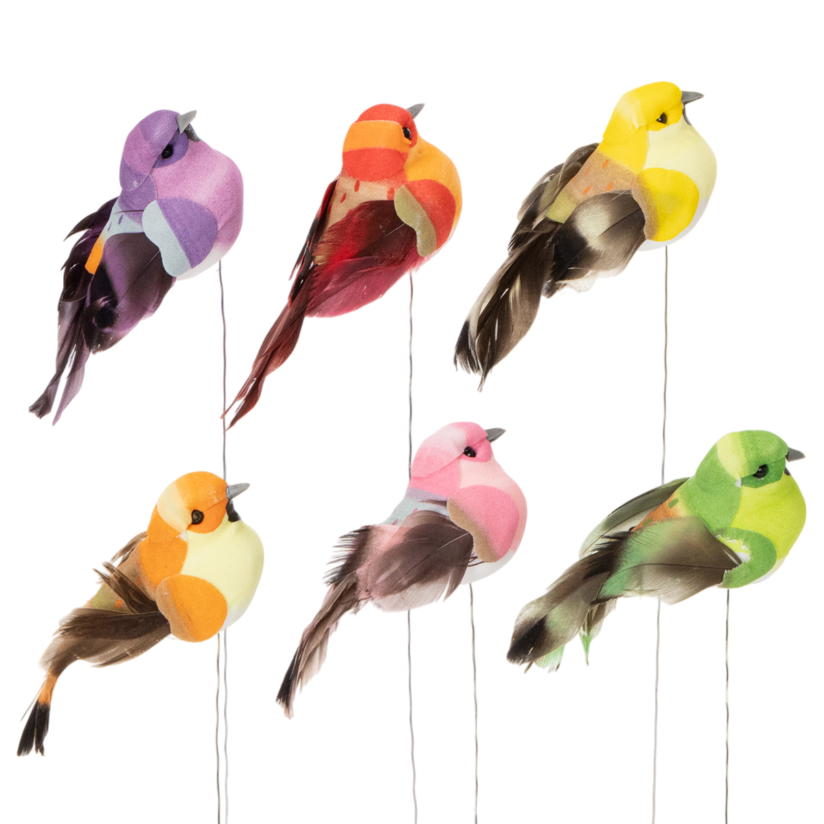 Kunstig fugl med ståltråd til håndverk, fargerik dekorasjon for enhver årstid, 8 cm, 12 stk.