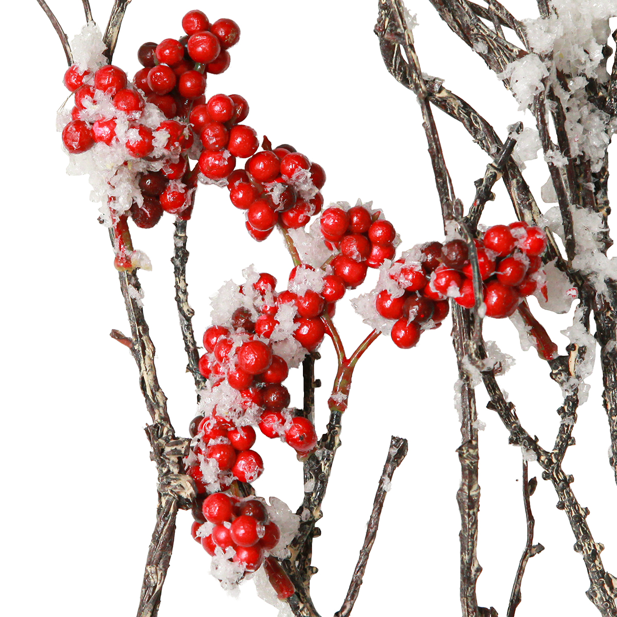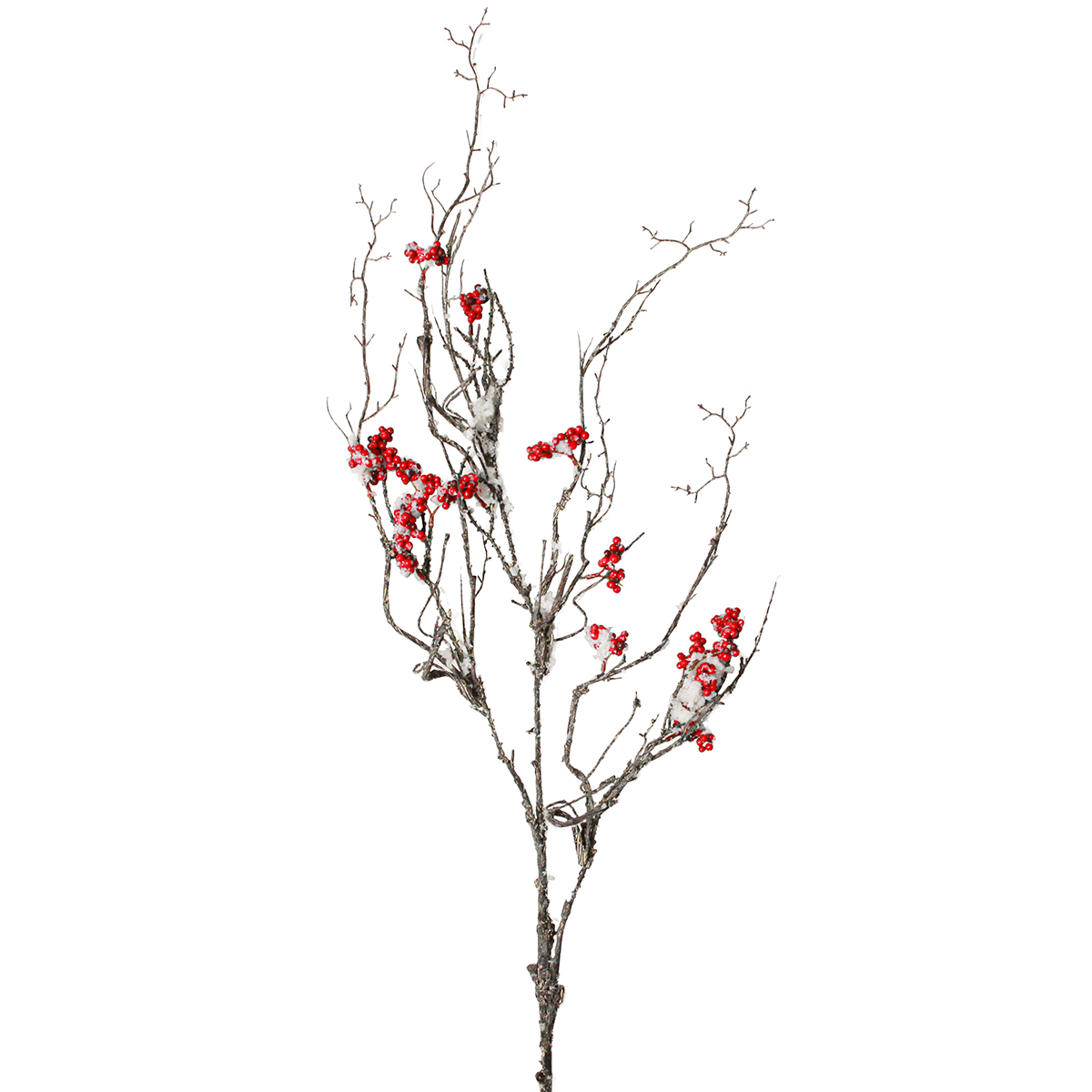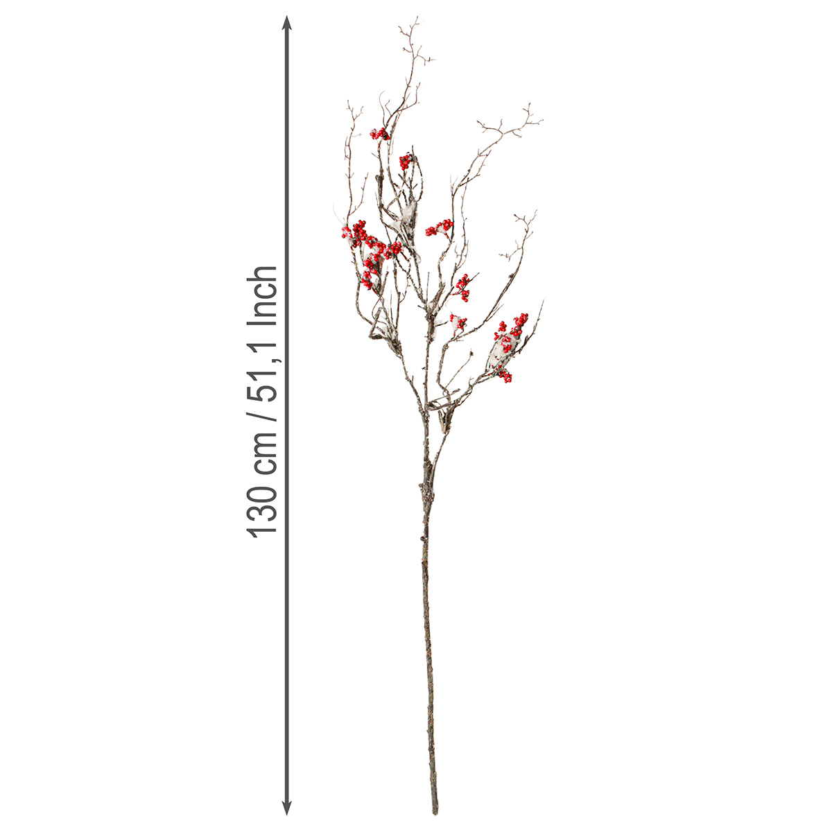 Kunstig gren lang snøhvit gren med røde bær 130 cm
