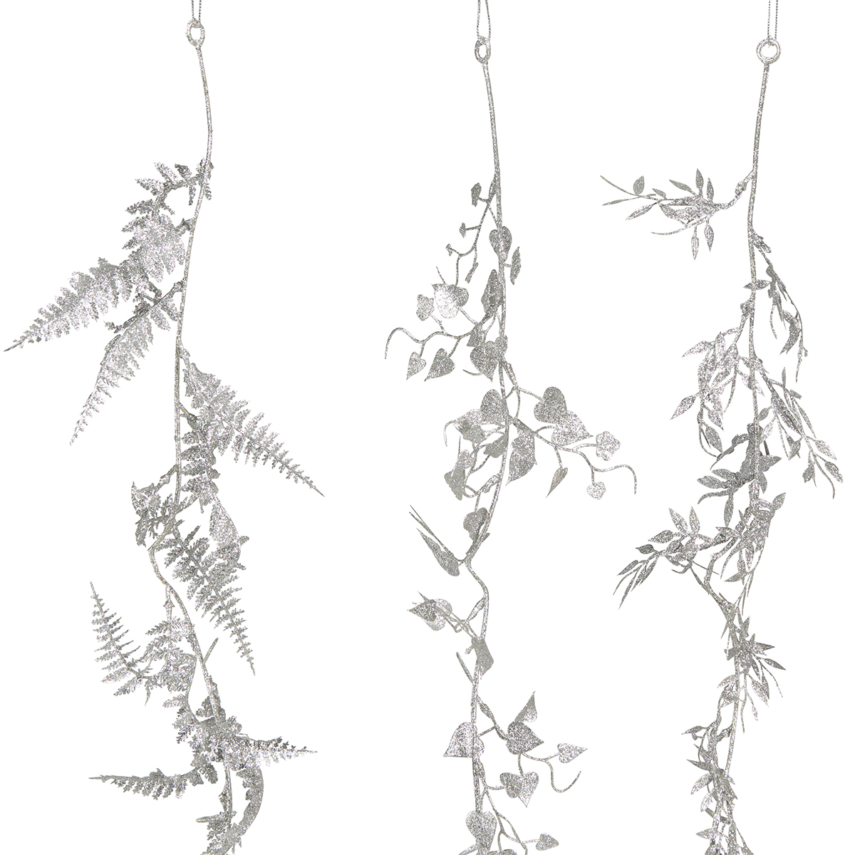 Kunstig krans sølvglitter bregnebladkrans 180cm 3 stk