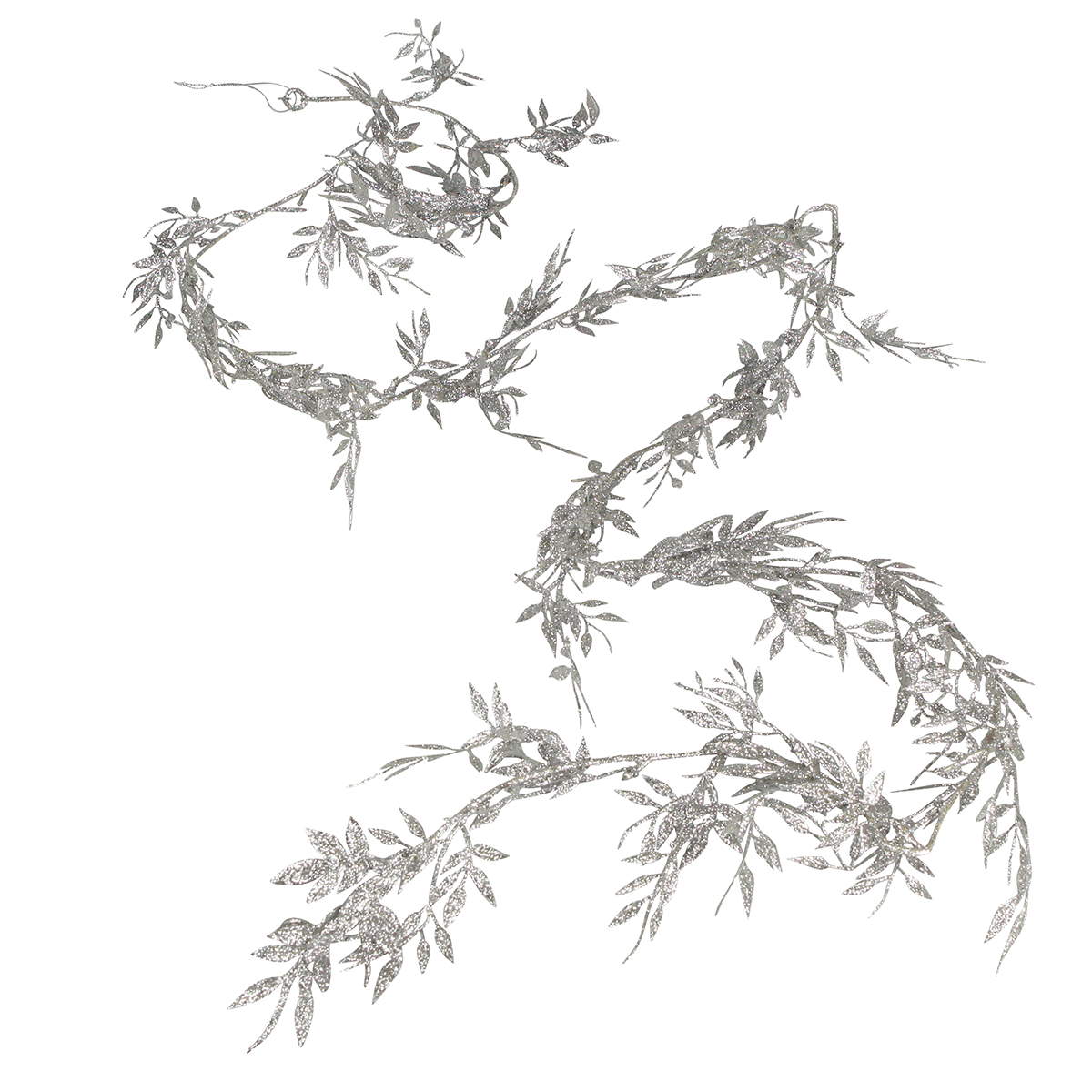 Produktnavn: Kunstig krans sølvglitter bregnebladkrans 180cm 3 stk