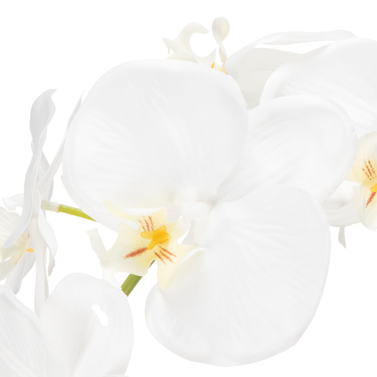 Spesielt i stressende miljøer, som et kontorpult eller et møterom, utfolder orkideen sin spesielle effekt. Den strålende hvitfargen bringer ro og harmoni til rommet, mens den realistiske fremtoningen bringer naturen innendørs uten behov for vanning eller plassering. Enten på en hylle, i gangen eller til og med på badet – denne orkideen setter et spesielt preg overalt.