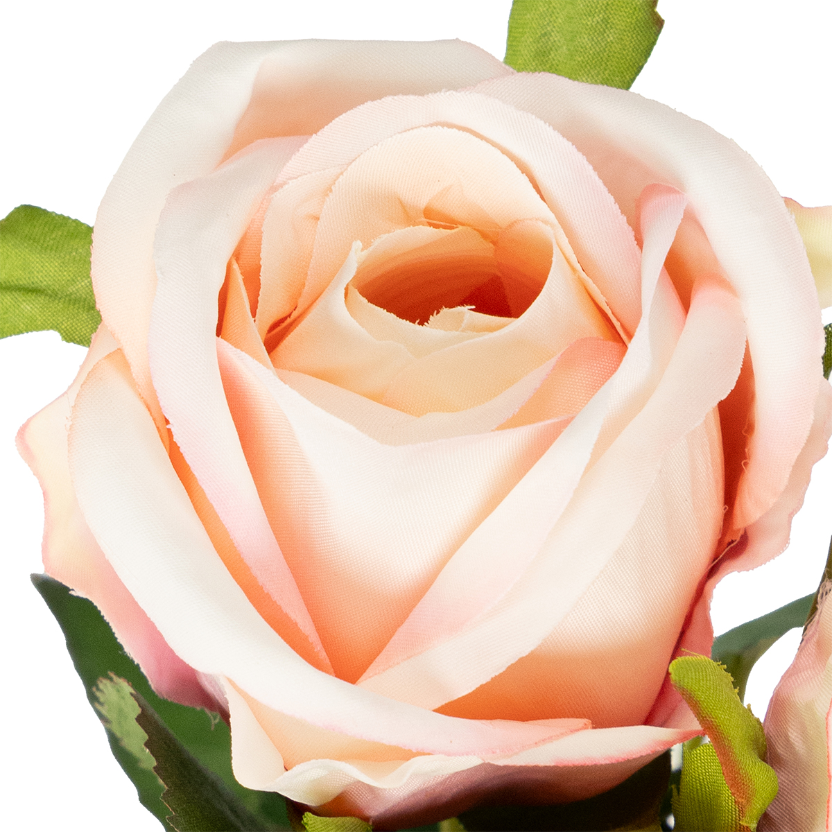 - Farge: Myk rosa med realistiske grønne blader