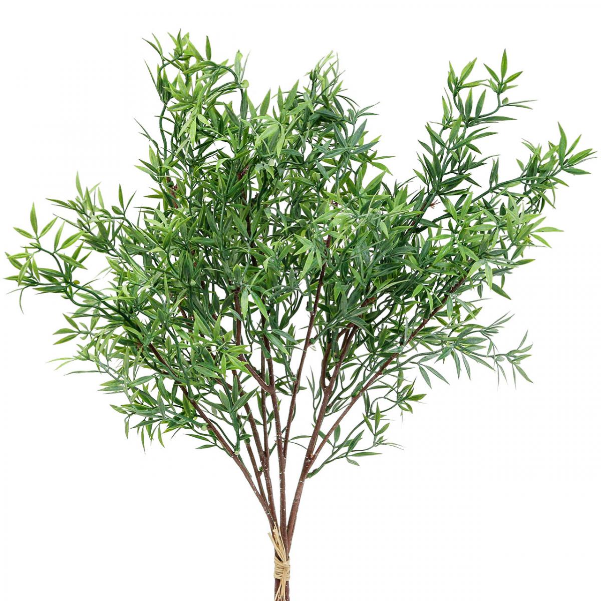 Denne kunstige bambusen laget av kvister i en haug fungerer som en villedende og ekte bindegrønn for buketter og arrangementer laget av kunstige blomster. De tre praktfulle dekorative grenene imponerer med sin vellykkede implementering.Bladverket til den kunstige bambusbusken inspirerer med sine formfulle små blader i forskjellige nyanser av grønt. De tre dekorative grenene har alle lange, brunlige grenhåndtak, som har en metallkjerne. Du kan bøye stilkene som du vil eller trimme dem ned med et par kraftige trådkuttere.