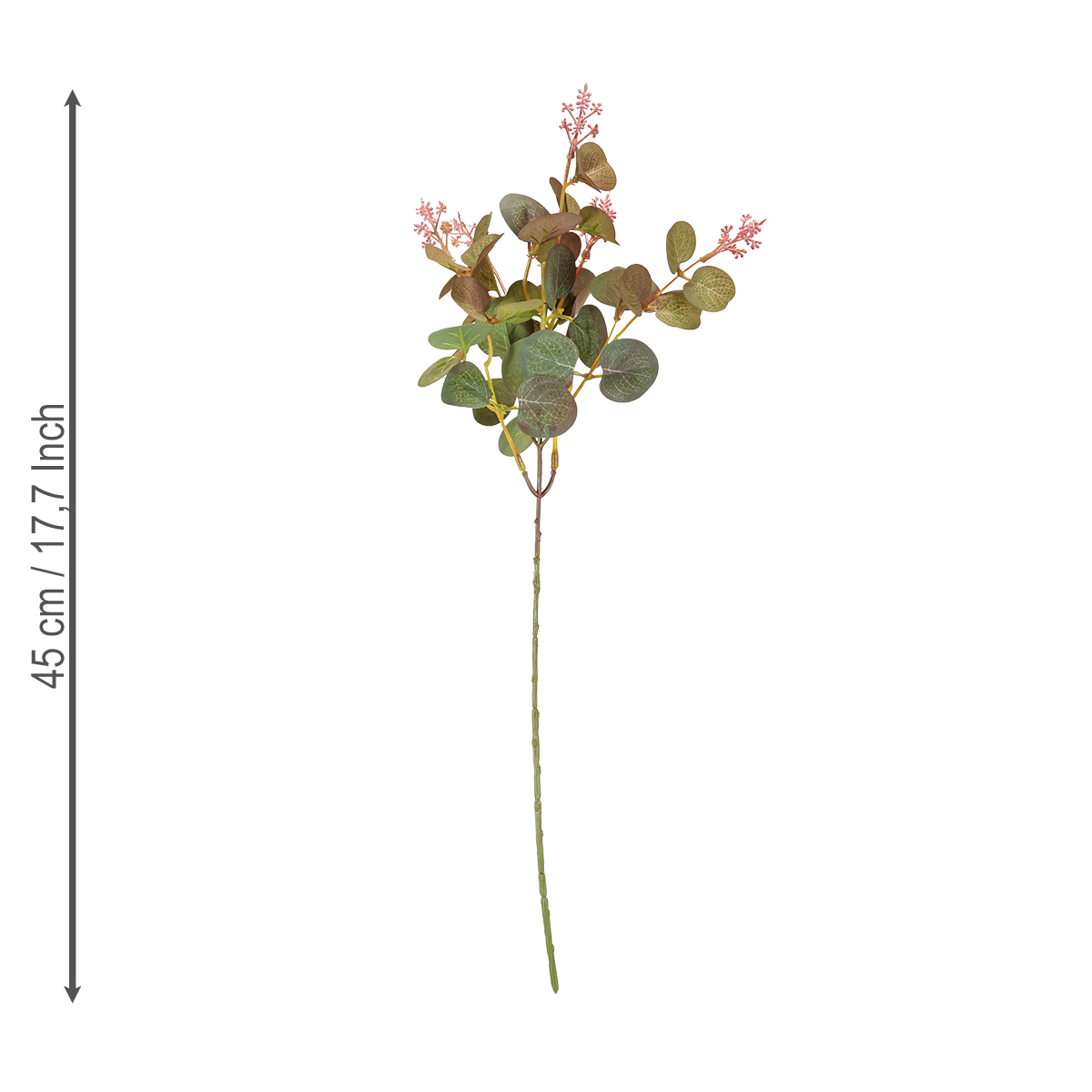 Kunstige eukalyptusgrener med rosa blomster, 45 cm, 3 stk.