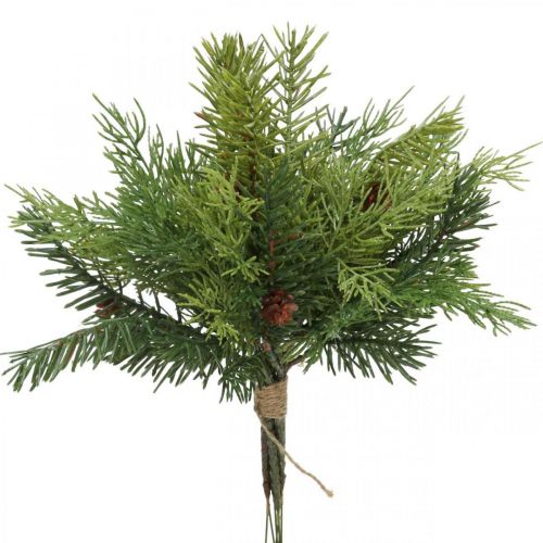 Et annet blikkfang er julegrangrenene med kongler. Sjelden vil du finne kunstige kongler på en kunstig furukvist. Fordi granens avlange kongler, som sjelden brukes som dekorasjon i naturen, ofte erstattes av furuens vidunderlig runde kongler. Et annet alternativ for grangrener er kunstige furugrener. De fine nålene deres og de dekorative små konglene, som også er runde, utgjør en attraktiv borddekorasjon til jul.