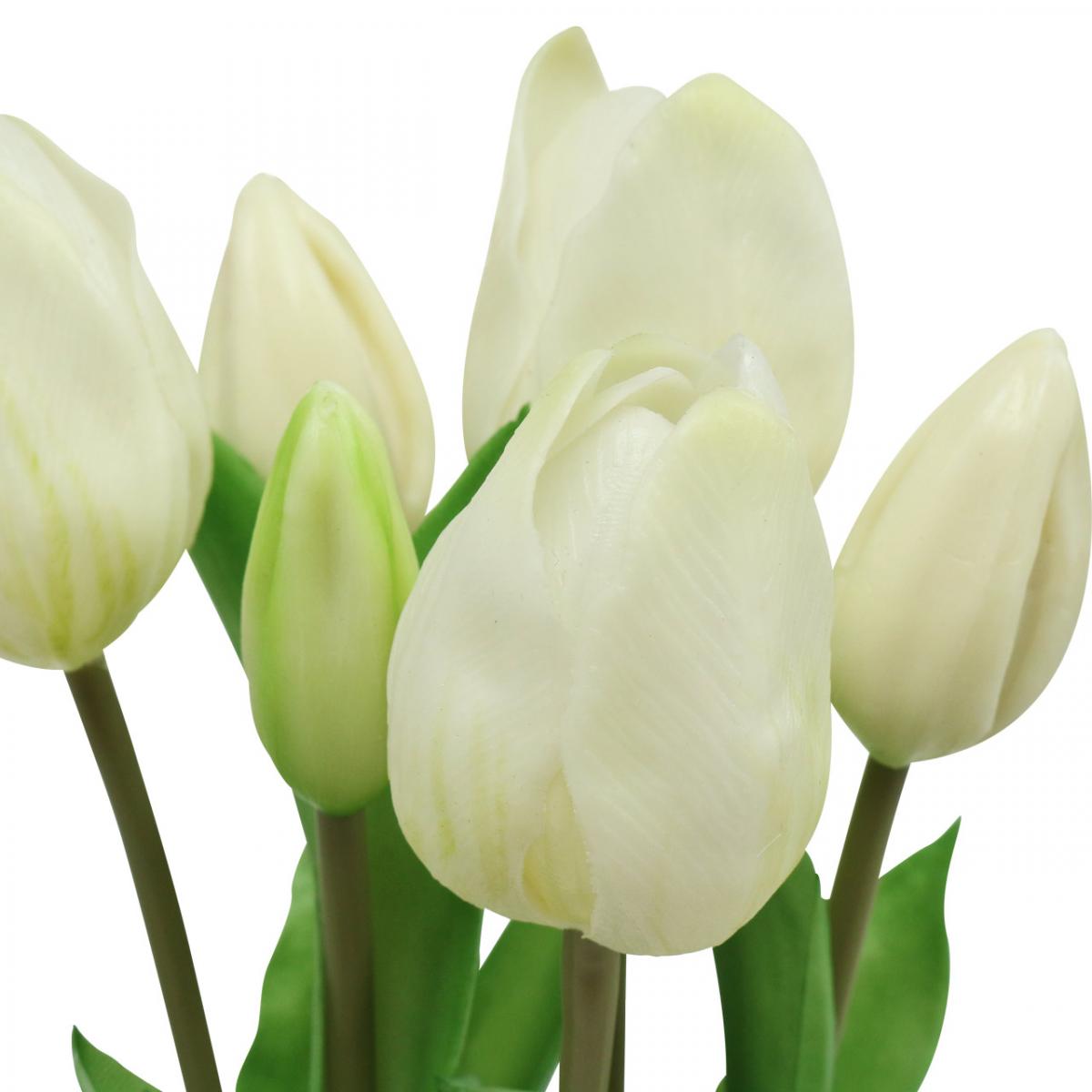 Kunstige Tulipaner Hvit Krem Real Touch 38cm 7 stk