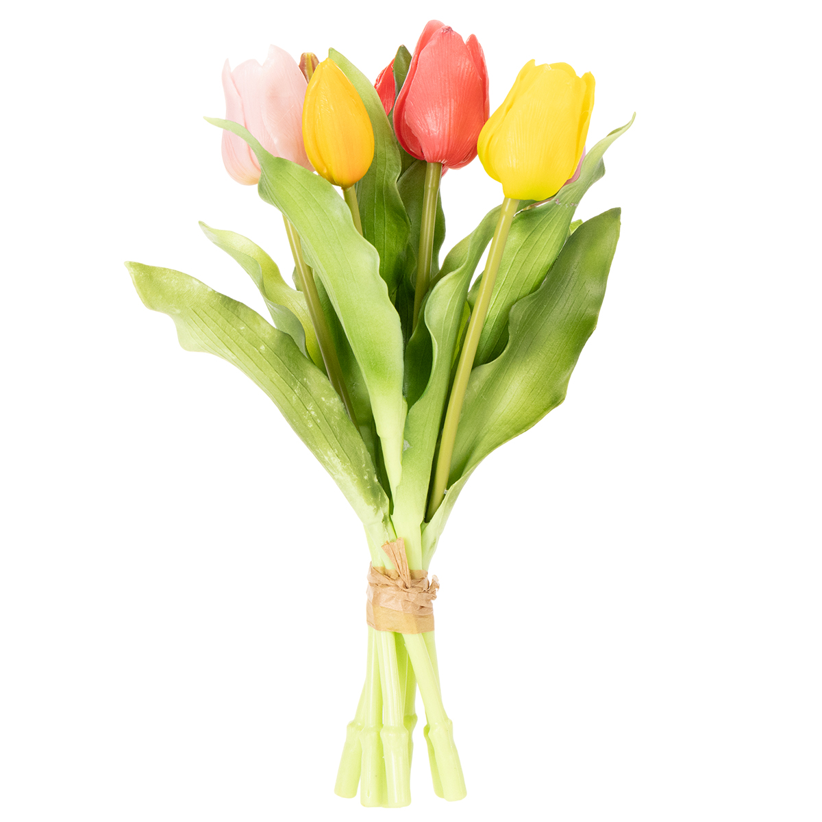 Våren er i luften! Disse kunstige tulipanene bringer magien fra blomstringssesongen rett inn i hjemmet ditt – uten daglig vedlikehold. Har du noen gang fortvilet over ekte blomster fordi de rett og slett ikke varer lenge? Med disse realistiske blomstene i rosa, rødt og gult har du funnet den perfekte løsningen. Enten du vil dekorere stuebordet eller legge til et snev av livlighet på arbeidsplassen din, tilbyr denne tulipanbuketten en sjarmerende og allsidig måte å spre vårfølelsen på. Blomstene er laget av høykvalitets gummi og imponerer med sin realistiske tekstur og ser utrolig naturtro ut. Og alle som setter pris på lang levetid og lite vedlikehold vil elske denne stilige dekorasjonen. Enten de er fargerike eller subtilt arrangert individuelt, forvandler disse kunstige blomstene ethvert rom til en våroase!