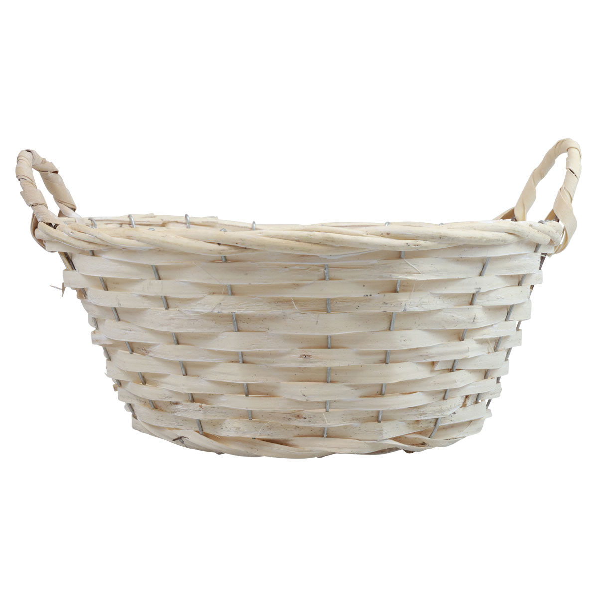 Produktnavn: Kurv med håndtak, sponkurv, plantekurv, hvit, vintage, dekorativ, Ø35 cm