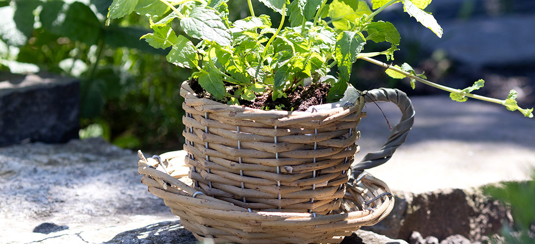 En rustikk dekorasjon for hus og hage kan fantastisk suppleres, for eksempel med en stor potetkurv eller en vinkurv i en mørk, naturlig brun. I likhet med kurv- og sponplateskålene er disse vanligvis foret med vanntett plastfilm, som er dekket av pottejord, blomsterskum og grønt, men som samtidig muliggjør problemfri vanning. Så du kan plante kurvene våre avhengig av årstid og smak, for eksempel med lyse påskeliljer og tulipaner om våren, sukkulenter og kaktus om sommeren og julestjerner og amaryllis om vinteren.