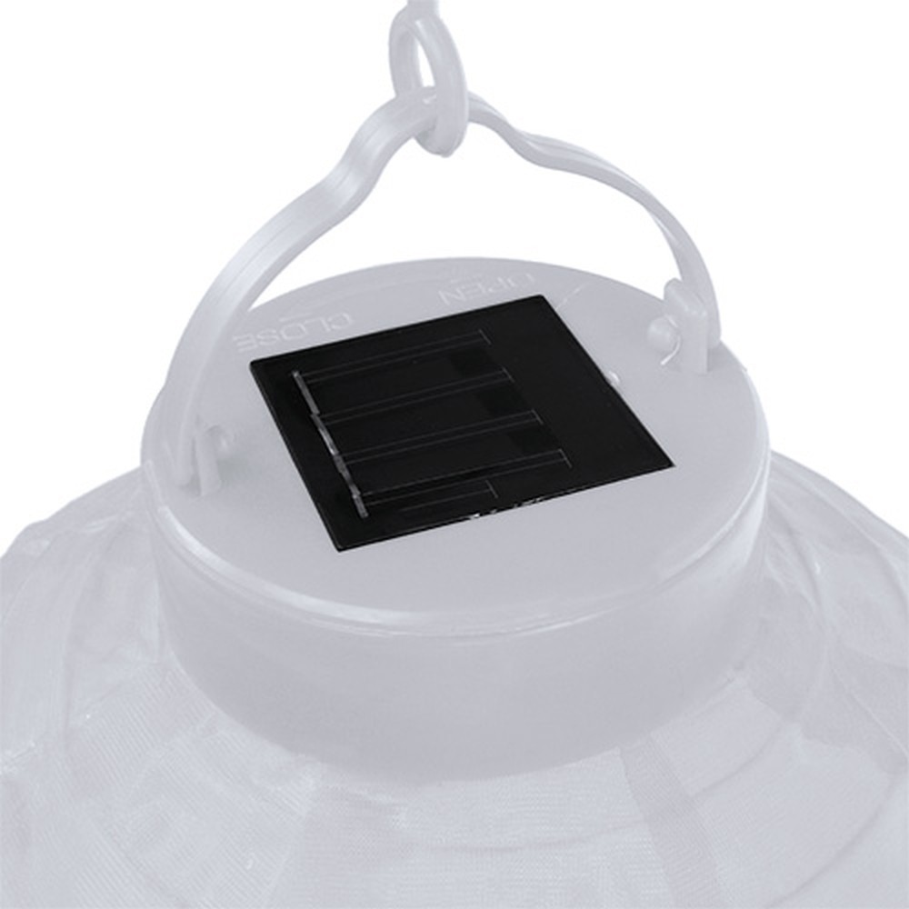 Det er også et håndtak med en liten krok, som du enkelt kan henge lampen med på et tre, en busk, en krok, på en linje eller på en hagepaviljong. Så du kan effektivt henge en balkong, en hage eller et inngangsparti. Men ikke begrens deg til hjemmet ditt, ta den praktiske lampen med deg når du skal på camping, svømme i en innsjø eller gå på fest på en eng i skogen!