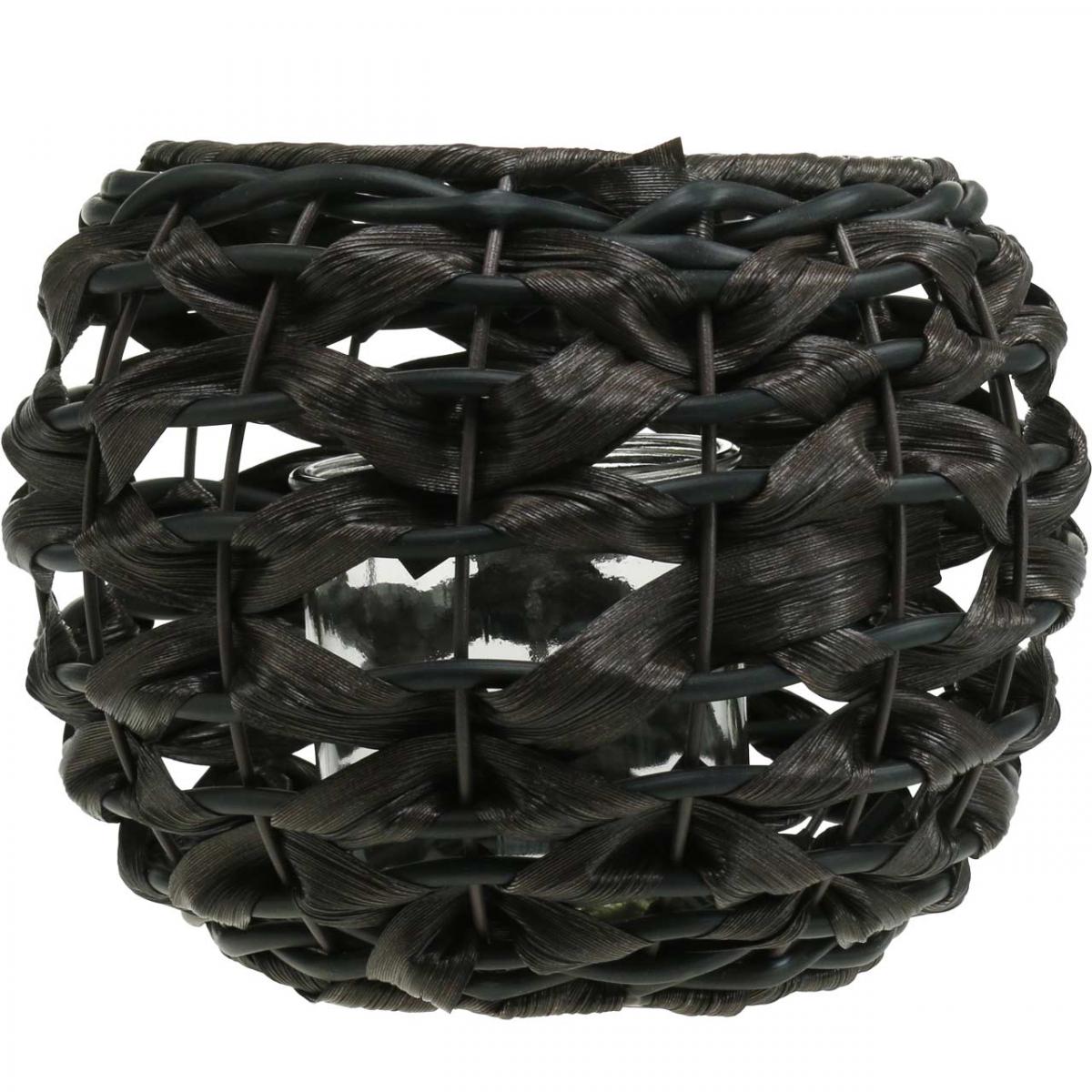Produktnavn: Lanterne flettet sort, brunt rotting lysglass Ø23cm H18cm