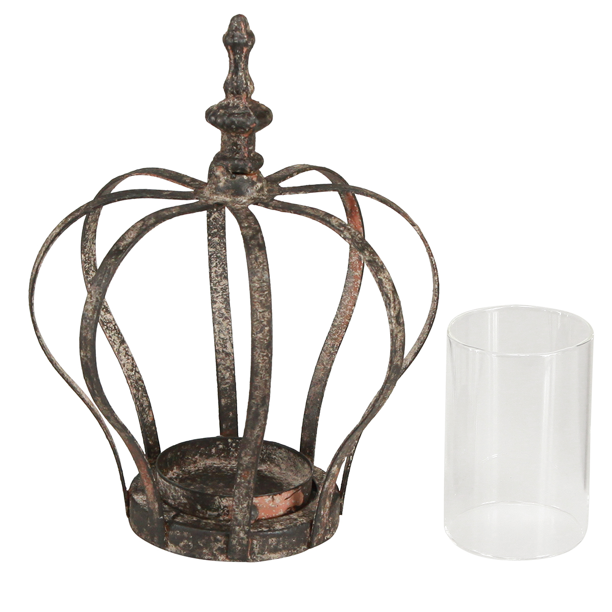 Lanterne Krone Brun Rust Med Lys Glass Ø14cm H18cm
