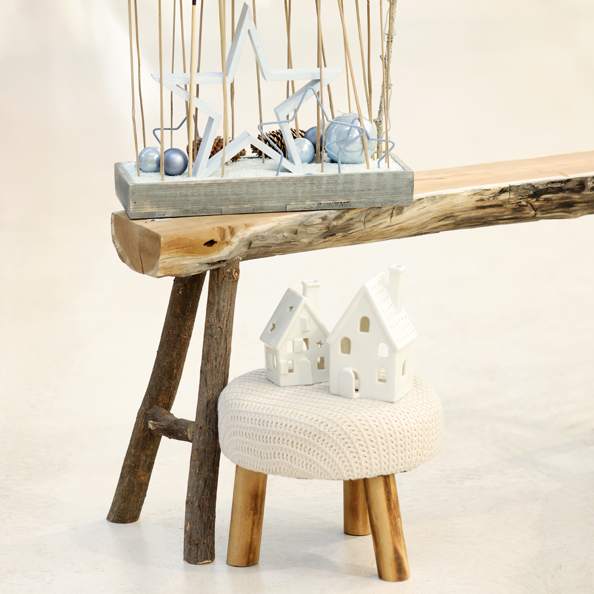 På grunn av sin enkle design egner det dekorative lykthuset seg like godt til moderne julepynt som til et nostalgisk designet adventsbord. Et lite telys er nok, og keramikkhuset ser veldig hjemmekoselig ut. Stearinlyset skinner fra alle vinduene i det dekorative huset og lar små koselige lys skinne på bordet.