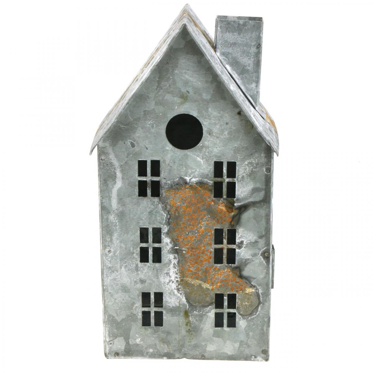 Lanternehus metall shabby chic vasket hvit, rust H20cm
