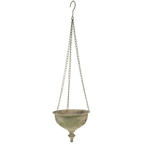 256 kr kr 192 Du sparer 25% (kr 64)Den dekorative kanten på denne hengende metallkurven har fem-bladede blomster. Den rustbrune fargen gjør også at metalldekorasjonen i en rust ser spesiell ut. Tre kjeder, koblet sammen med en krok, stabiliserer den dekorative bollen og lar den samtidig henges opp. Den dekorative kanten har en høyde på omtrent seks centimeter. Den runde bollen uten dekorativ kant er omtrent ti centimeter høy. Dette resulterer i en total høyde på omtrent...