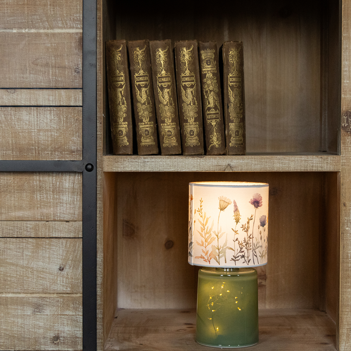 Leter du etter en lampe som ikke bare gir behagelig lys, men som også tilfører et snev av eleganse til rommet ditt? Denne blomstrete bordlampen er et virkelig høydepunkt for ethvert oppholdsrom! Den sjarmerende blomsterskjermen kombinert med den elegante grønne glassbasen gjør den til et allsidig dekorativt element – enten du foretrekker en moderne, romantisk eller skandinavisk stil. Med sin kompakte størrelse på 23 cm i høyden og 11 cm i diameter passer den perfekt på sidebord, nattbord eller hyller. Samtidig gir LED-teknologien behagelig og energieffektivt lys som umiddelbart gjør at hjemmet ditt føles koseligere.