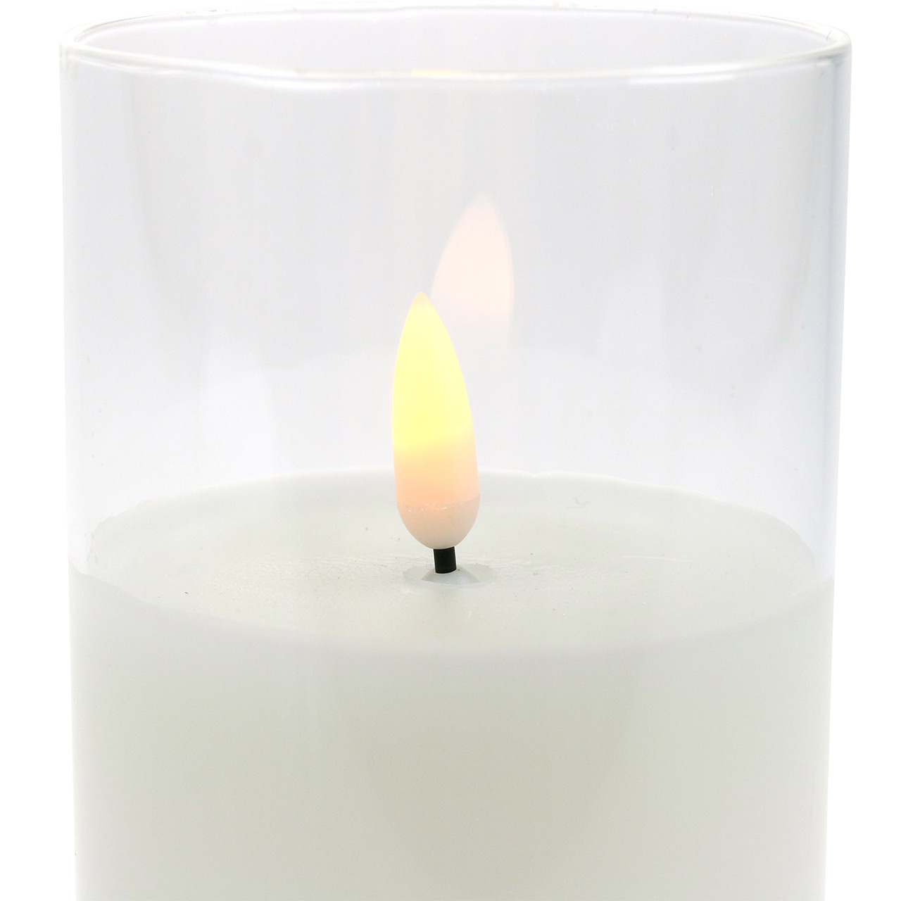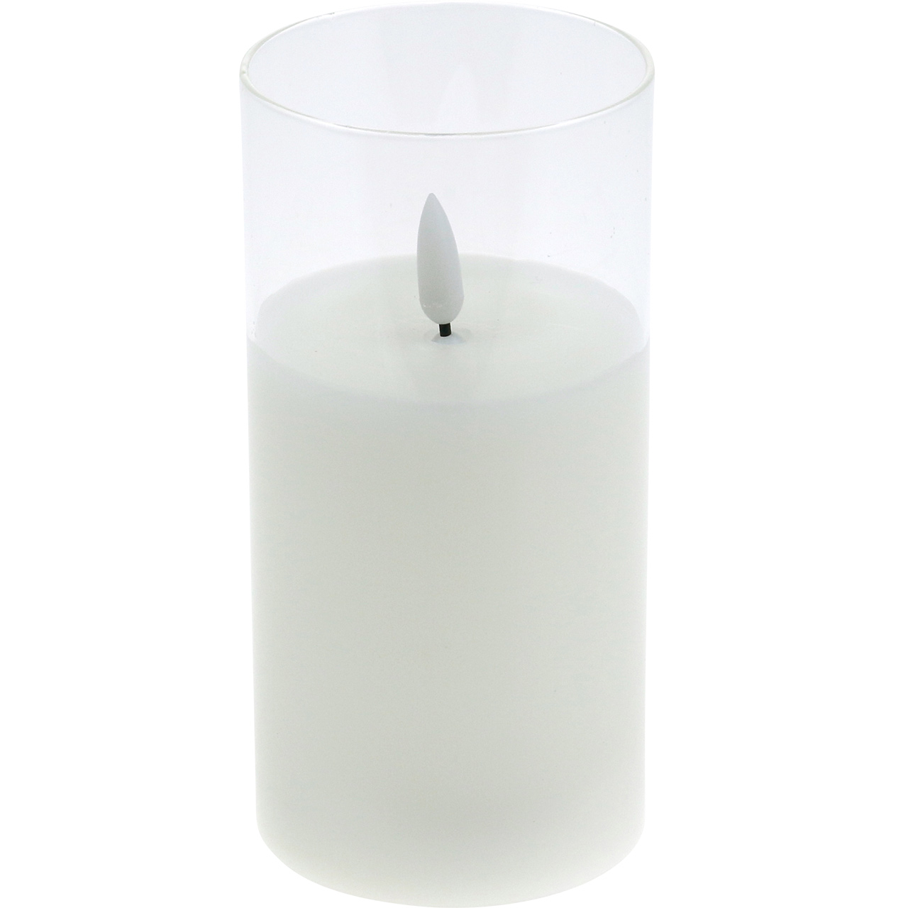 LED lys i glass ekte voks hvit Ø7,5cm H10cm