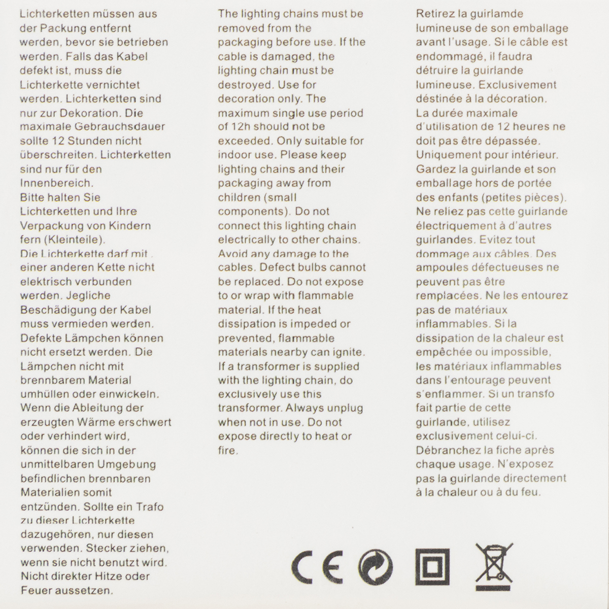 Oppbevar fairy lights tørt, støvfritt og beskyttet mot lys.