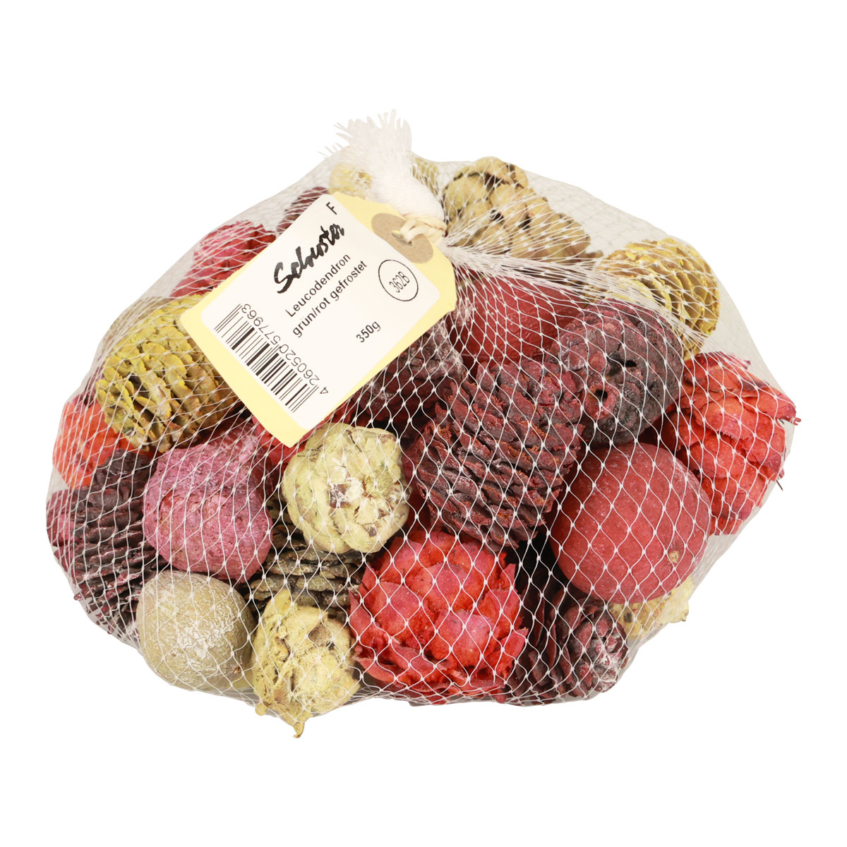 Produktnavn: Leucadendron kjegler Bellgum Grønn Rød Gul Frostet 300g