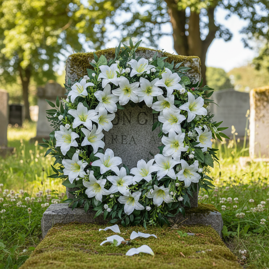 Som en kunstig blomst er denne liljen på en ledning i størrelsesmediet alltid en populær komponent for et begravelsesarrangement, spesielt på søndagens død. Den hvite liljen brukes ofte i begravelsesblomster fordi blomsten symboliserer uskyld og hjerteens renhet. I form av en kunstig plante har liljen fordelen at den edle kelkblomsten med de gule pollenstilkene ikke ødelegger og dermed opprettholder sin utstråling i veldig lang tid.