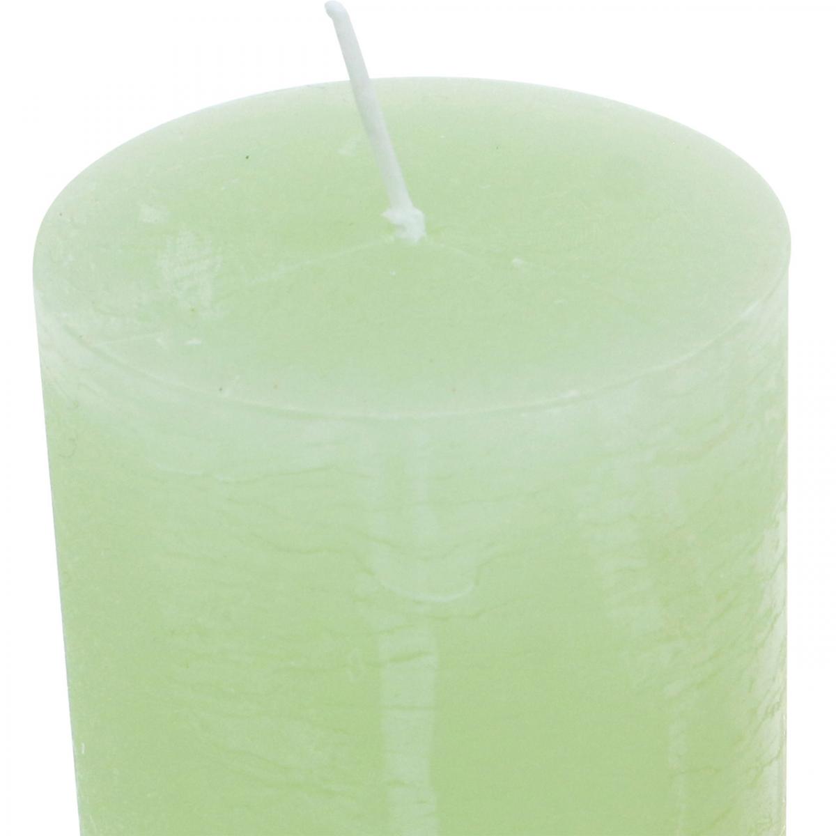 De lysegrønne stearinlysene til bryllupsdekorasjonen din, eller som du plasserer på et stearinlys om våren, kommer til deg i et praktisk sett med 4 stk. Hvert av de ensfargede søylelysene i grønt er omtrent 100 millimeter høyt og omtrent 60 millimeter i diameter.