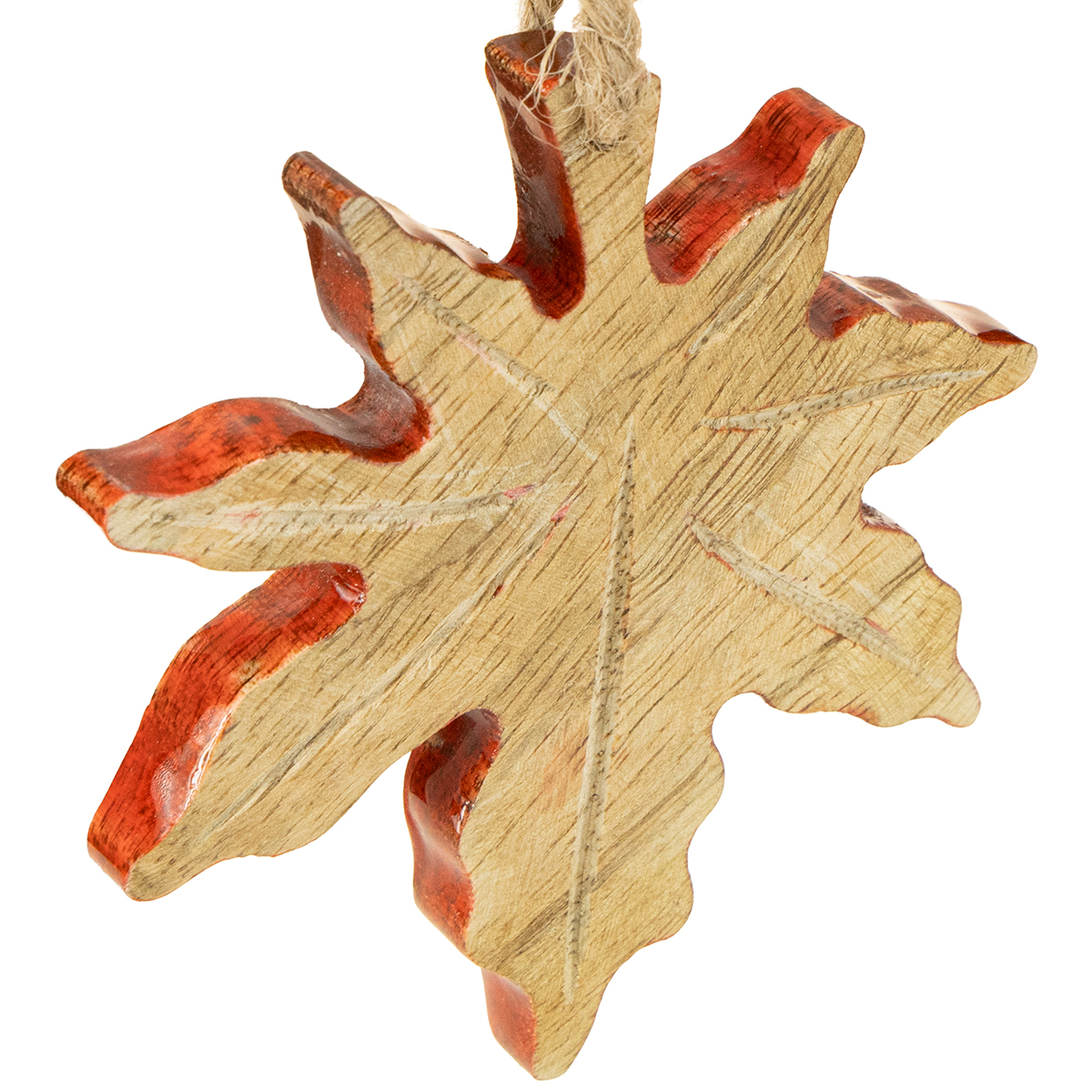 Vår tredekorasjon i lønneblader kombinerer naturlige materialer med stilig design. Hvert av de seks dekorative bladene imponerer med sin individuelle åring og kjærlig utformede utsmykninger. Takket være det autentiske fargevalget i grønt, rødt og brunt skaper anhengene et harmonisk helhetsinntrykk som perfekt komplementerer høstens varme farger. De måler 10 cm i høyden og 15 cm totalt inkludert jutesnoren, og er allsidige i bruk – enten som vindusdekorasjon, et hengende blikkfang eller en del av et høstlig bordarrangement.