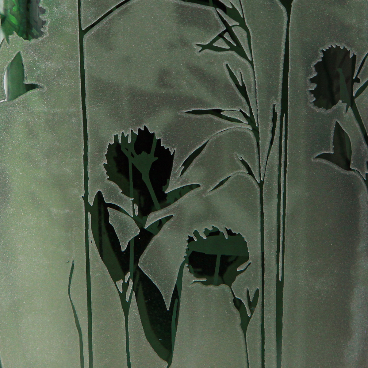 Lykt av hvitt glass med grønt engmotiv H18cm