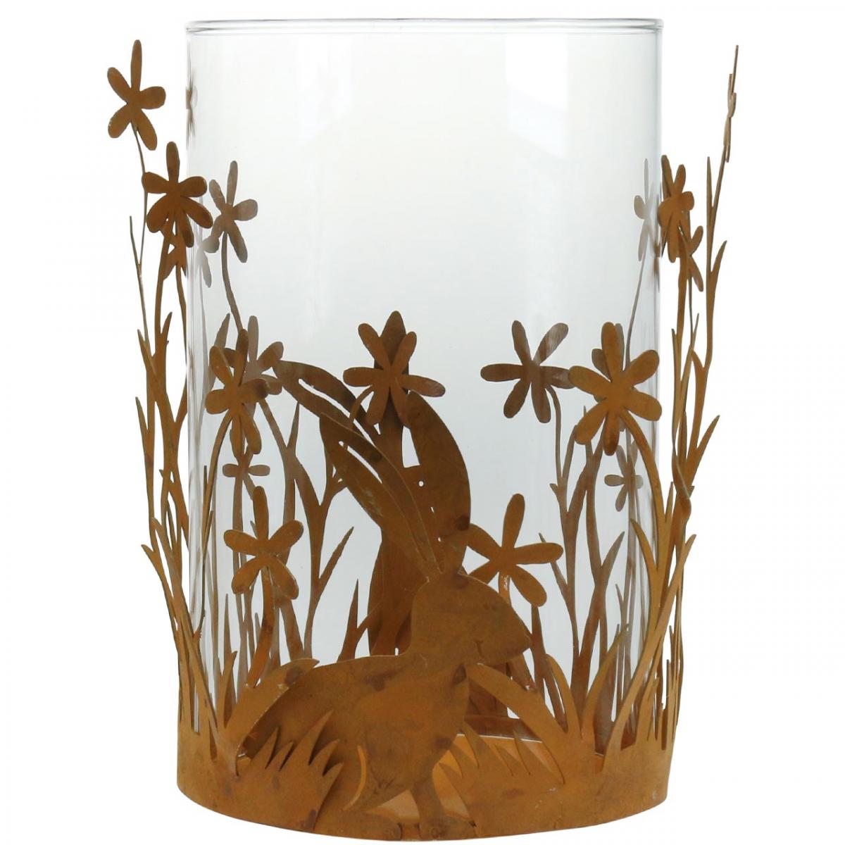 Plasser et søylelys eller telys i den medfølgende glassylinderen, og du får en vakker påskelysdekorasjon på kort tid. Metalllykten med blomster og kaniner er også dekket med en attraktiv patina av rustikk patina.