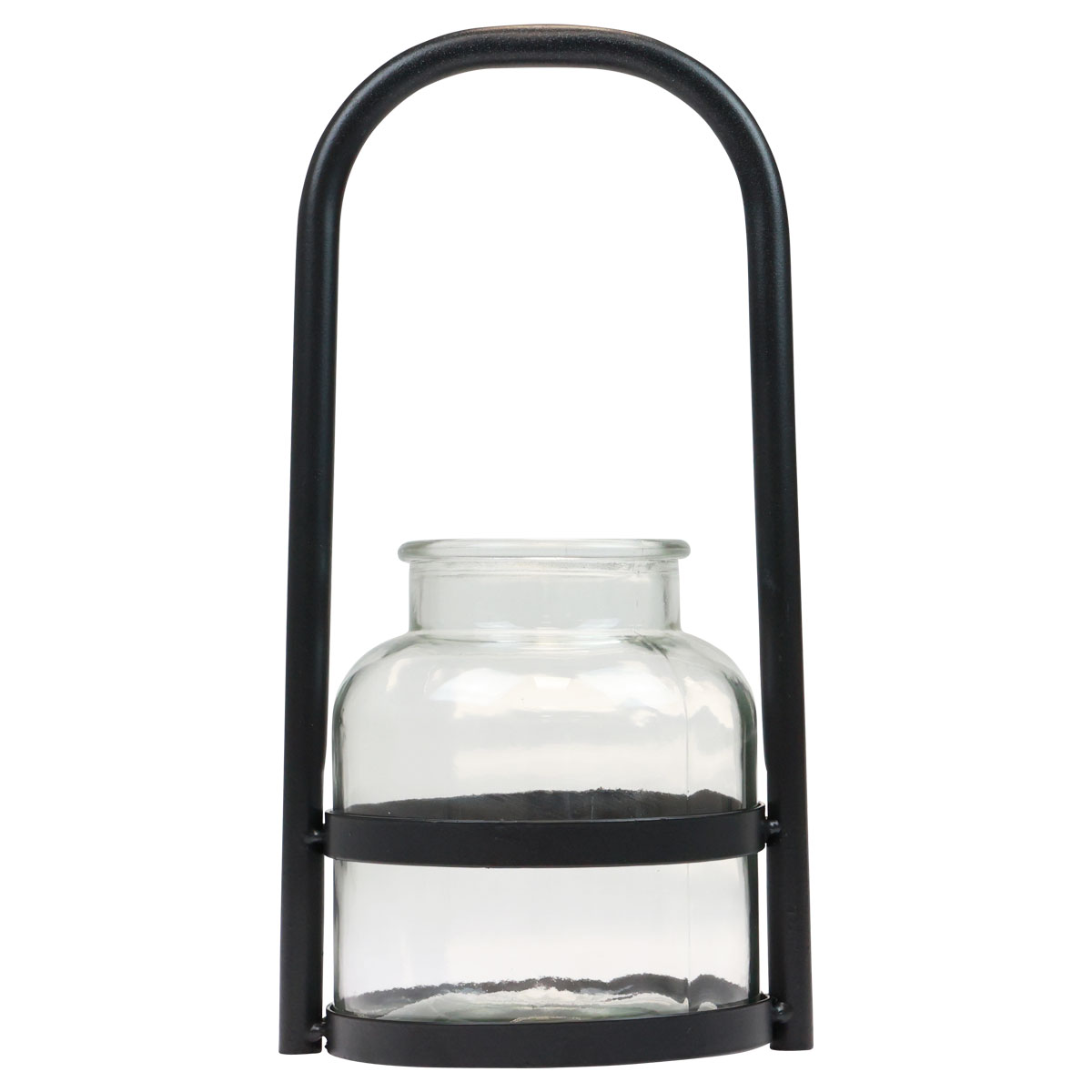 Lykt metall glass dekorasjon svart klart håndtak Ø14,5cm