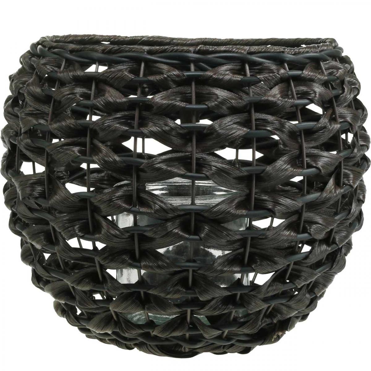 I stedet for lyktglasset kan du også bruke kurven som en dekorativ krukke. Sett en tallerken og en blomsterpotte med en potteplante i. Det er forresten en mindre kurv i dette designet som borddekorasjon som matcher den flettede lykten i sort.