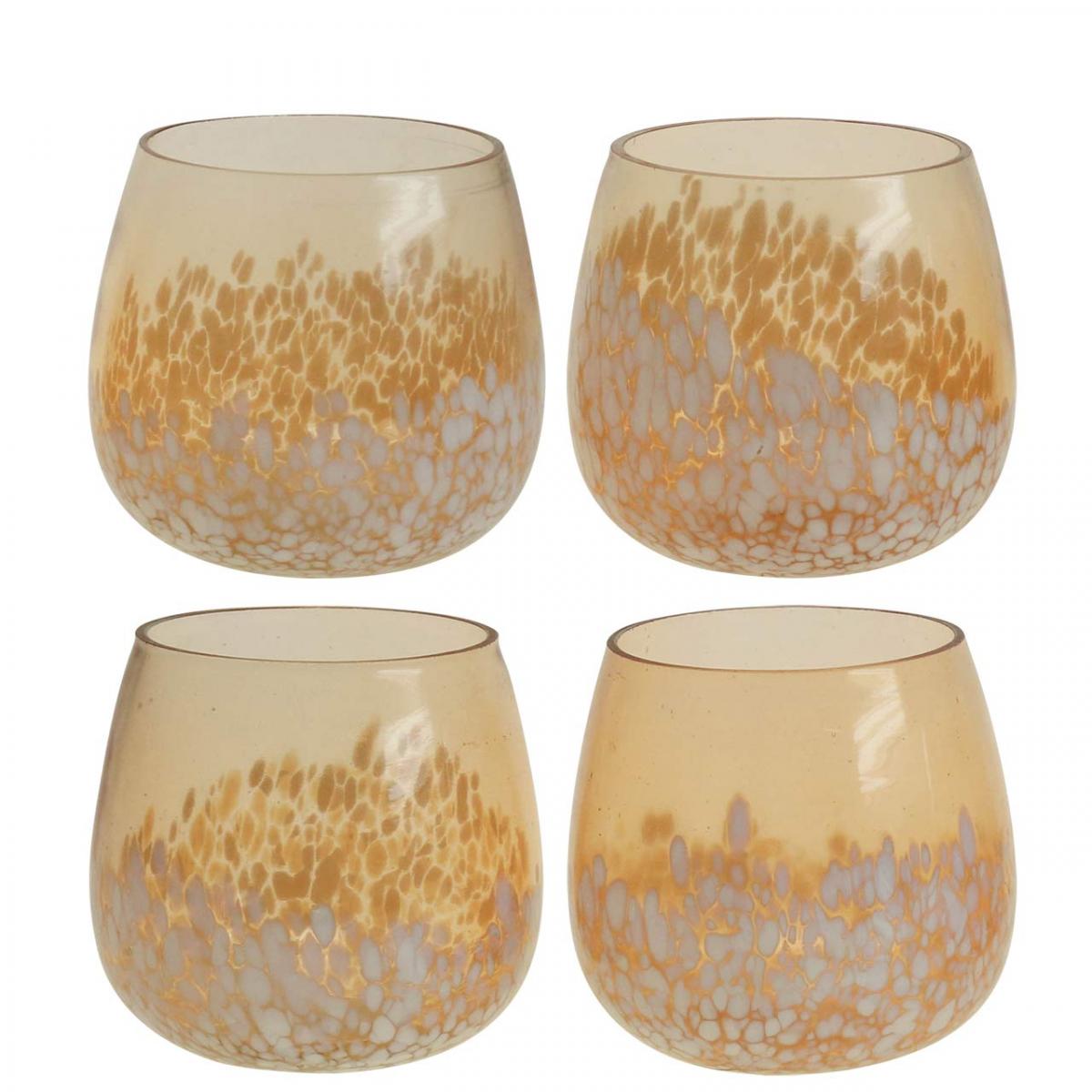 Lyktglass telysholder glassdekor brun hvit Ø8cm 4stk