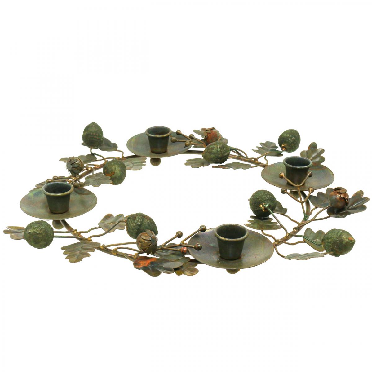 Lys krans metall messing look dekorasjon eikenøtter Ø36cm