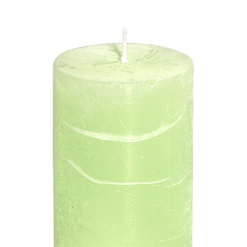 De mintgrønne stearinlysene er laget av fastfarget voks og er i et sett med 4 stk. De brenner hver i rundt 25 timer og er rundt 50 millimeter i diameter og rundt 100 millimeter høye. Vær oppmerksom på sikkerhetsbestemmelsene for håndtering av åpen ild når du brenner lysene!